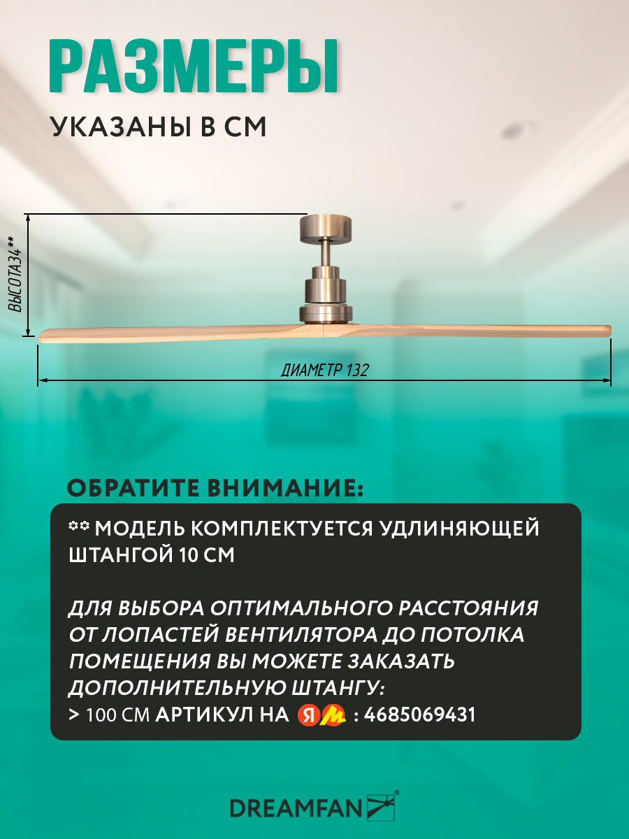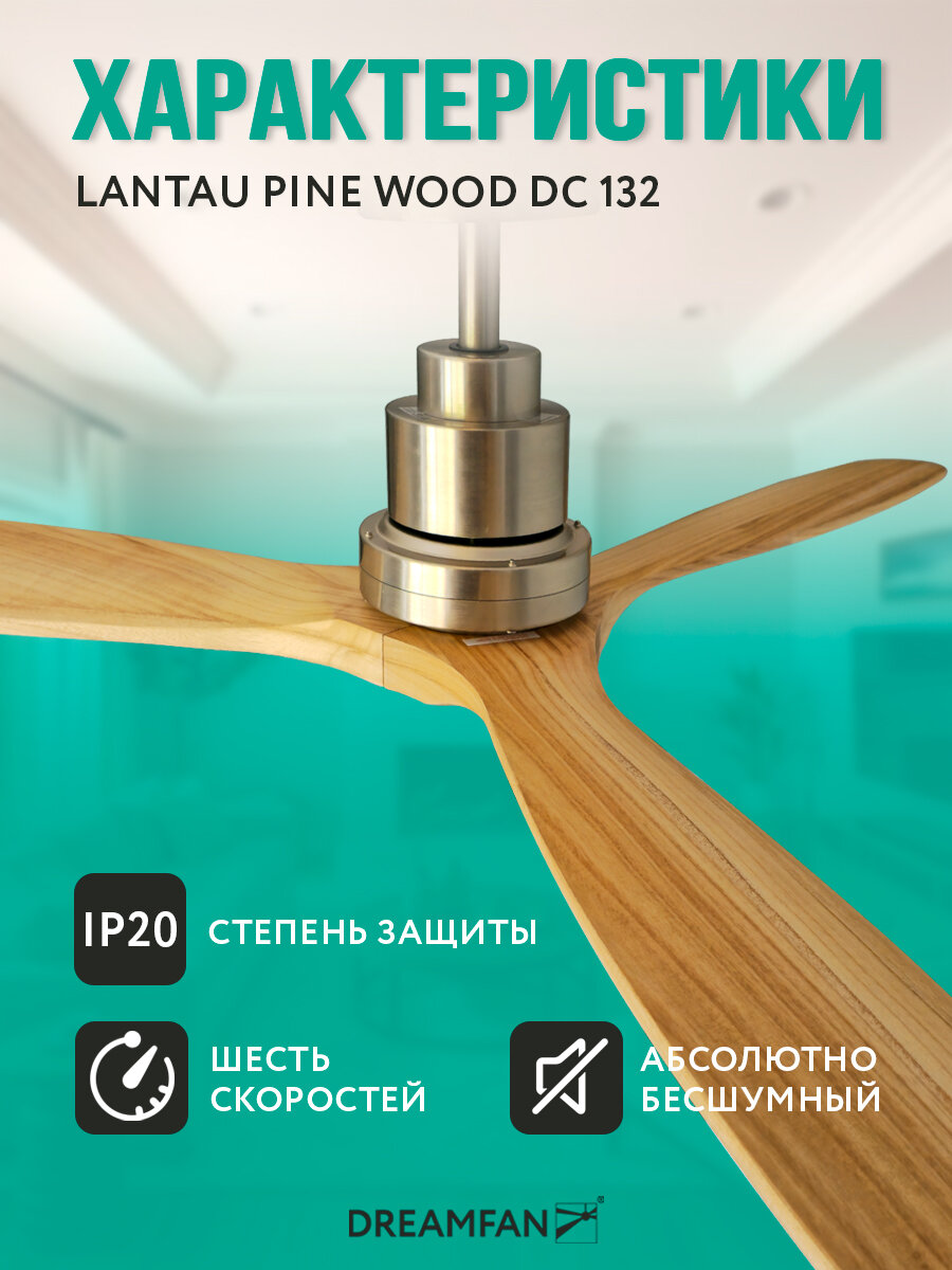 Потолочный вентилятор DREAMFAN Lantau Pine Wood DC 132 (33502DC): сравнение цен, характеристики, фото, актуальное наличие и цены.