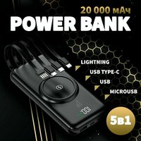 Повербанк 20000 мАч + 4 кабеля станет надежным компаньоном в повседневной жизни. Благодаря высокой емкости аккумулятора и наличию 4 кабелей с разными разъемами, заряжайте свои гаджеты там, где бы вы ни были. Компактные размеры делают Powerbank легким в транспортировке, а высокое качество материалов и безопасность использования обеспечат долгий срок службы и безотказную работу. Неотъемлемое устройство, «вместилище энергии» для тех, кто ценит комфорт и эффективность по жизни.