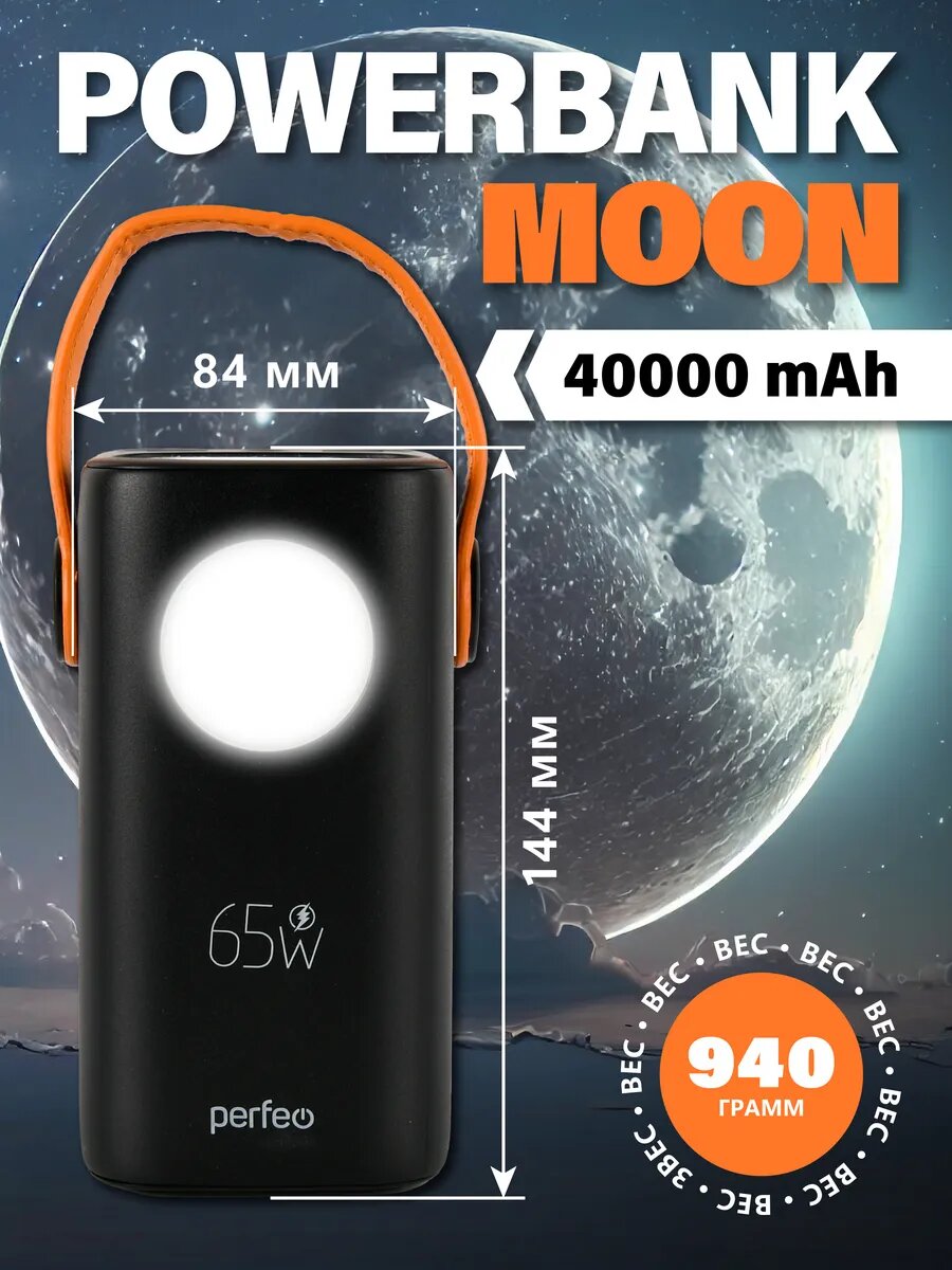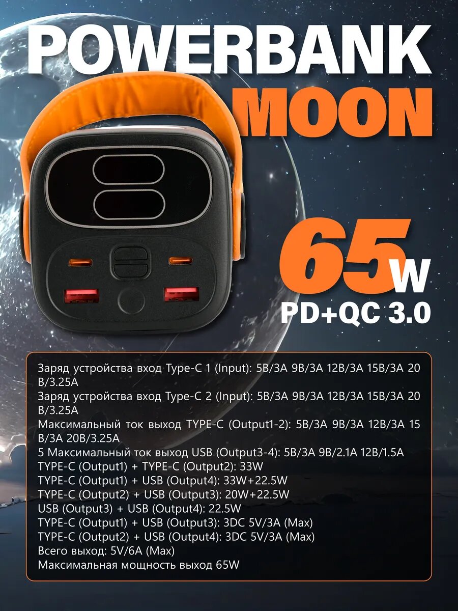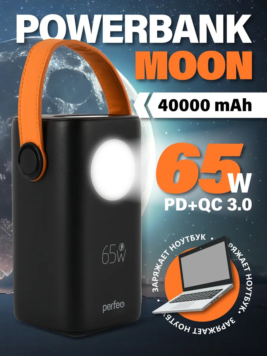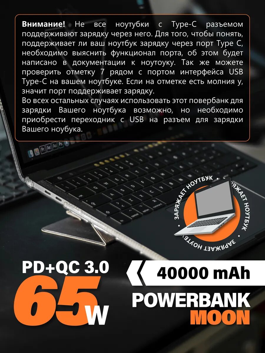 Повербанк 40000 mAh для телефона и ноутбука, MOON, PD+QC 3.0 max 65W фонарик, черный: сравнение цен, характеристики, фото, актуальное наличие и цены.