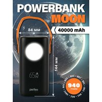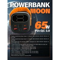 Купить Повербанк 40000 mAh для телефона и ноутбука, MOON, PD+QC 3.0 max 65W фонарик, черный с доставкой по всей России.