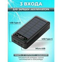 зарядка двух устройств, индикатор заряда, солнечная батарея, фонарик