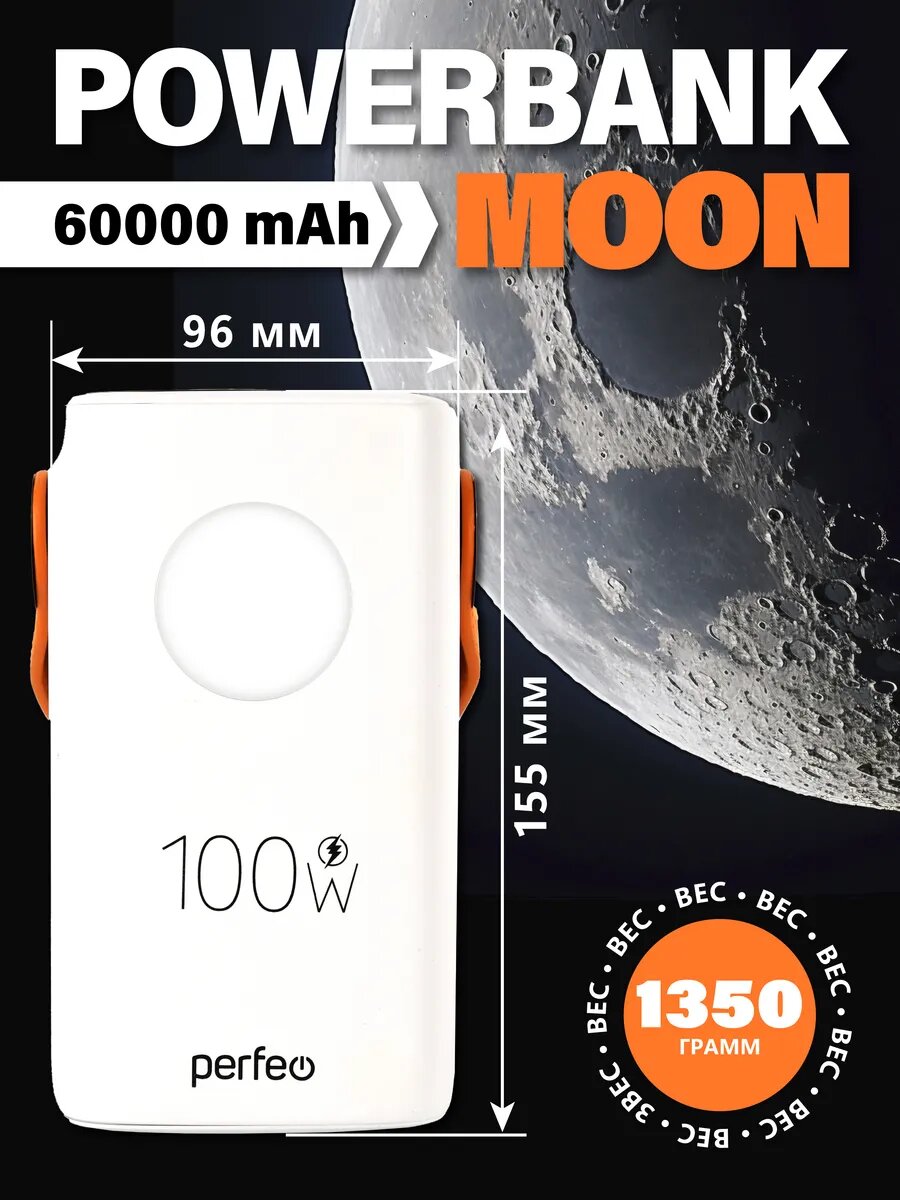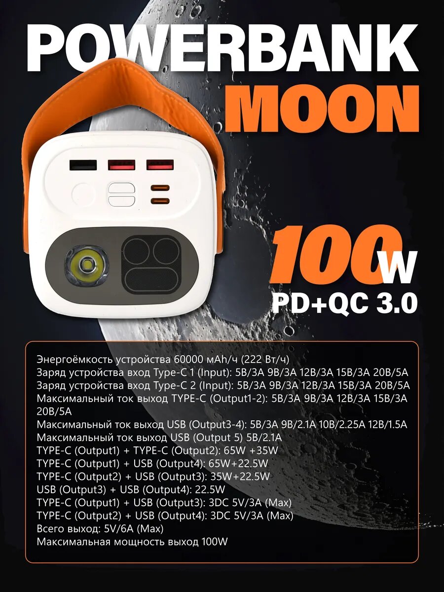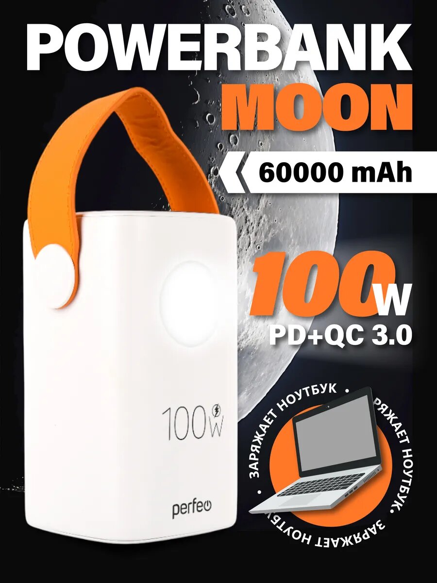 Повербанк 60000 mAh для телефона и ноутбука, MOON, PD+QC 3.0 max 100W фонарик, белый: сравнение цен, характеристики, фото, актуальное наличие и цены.
