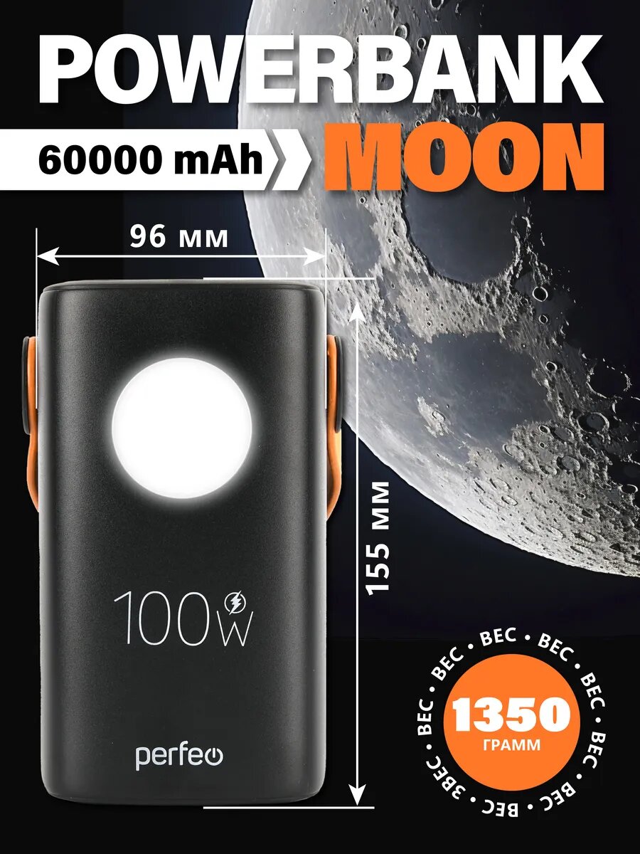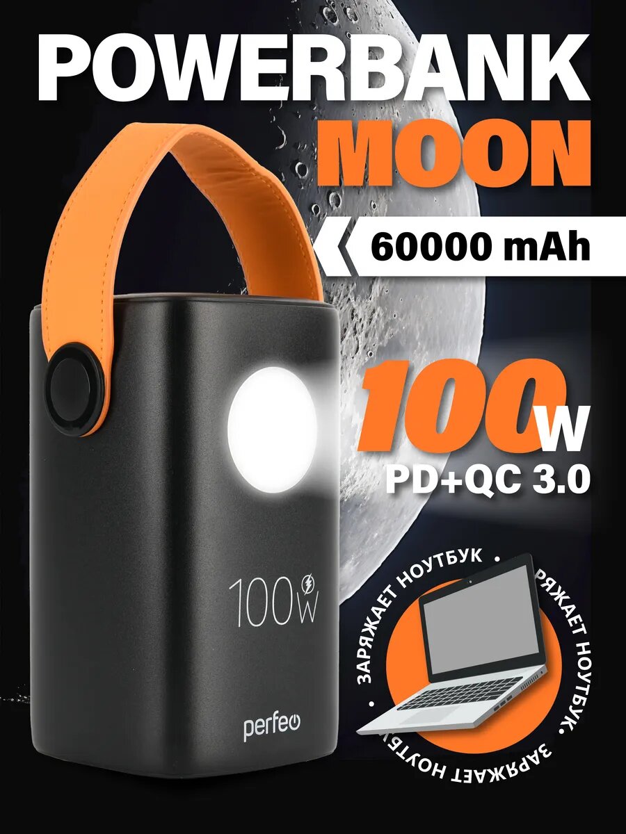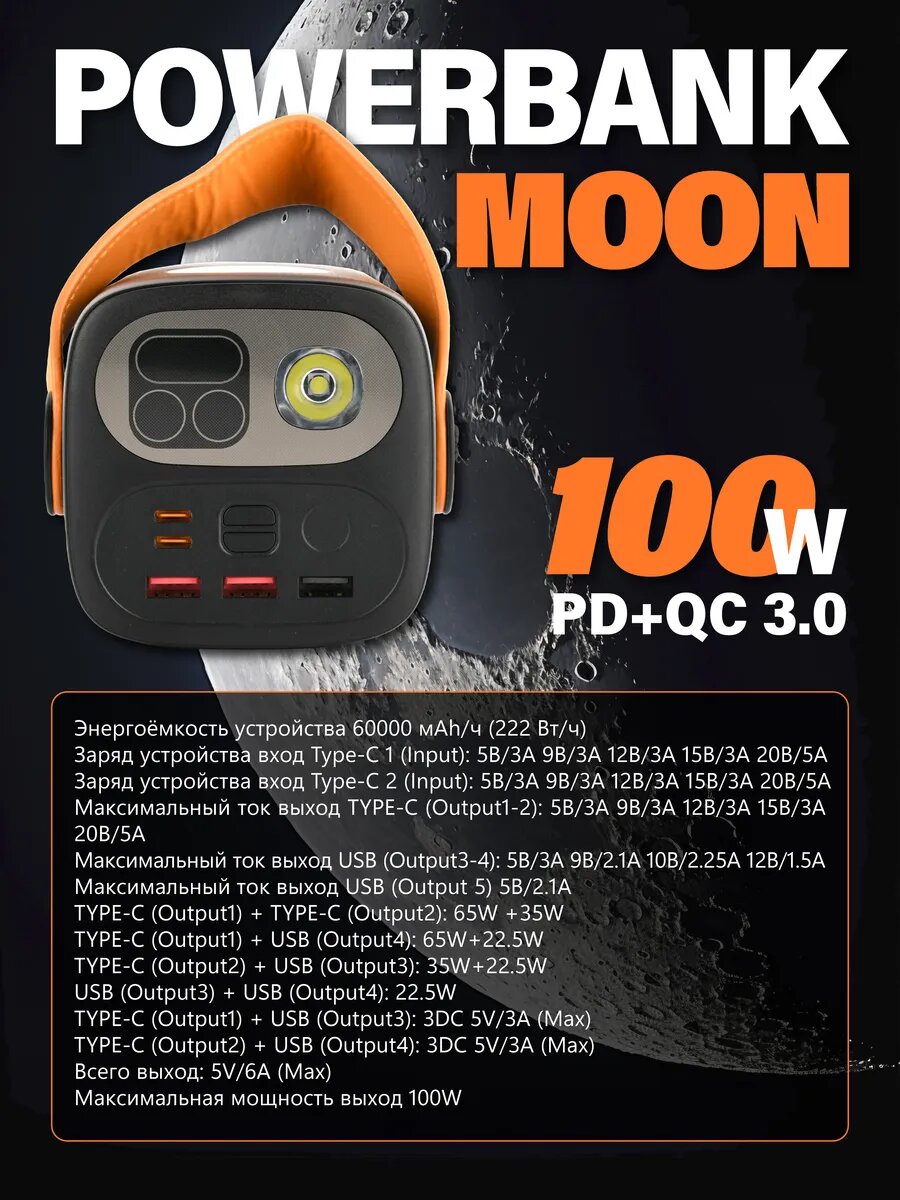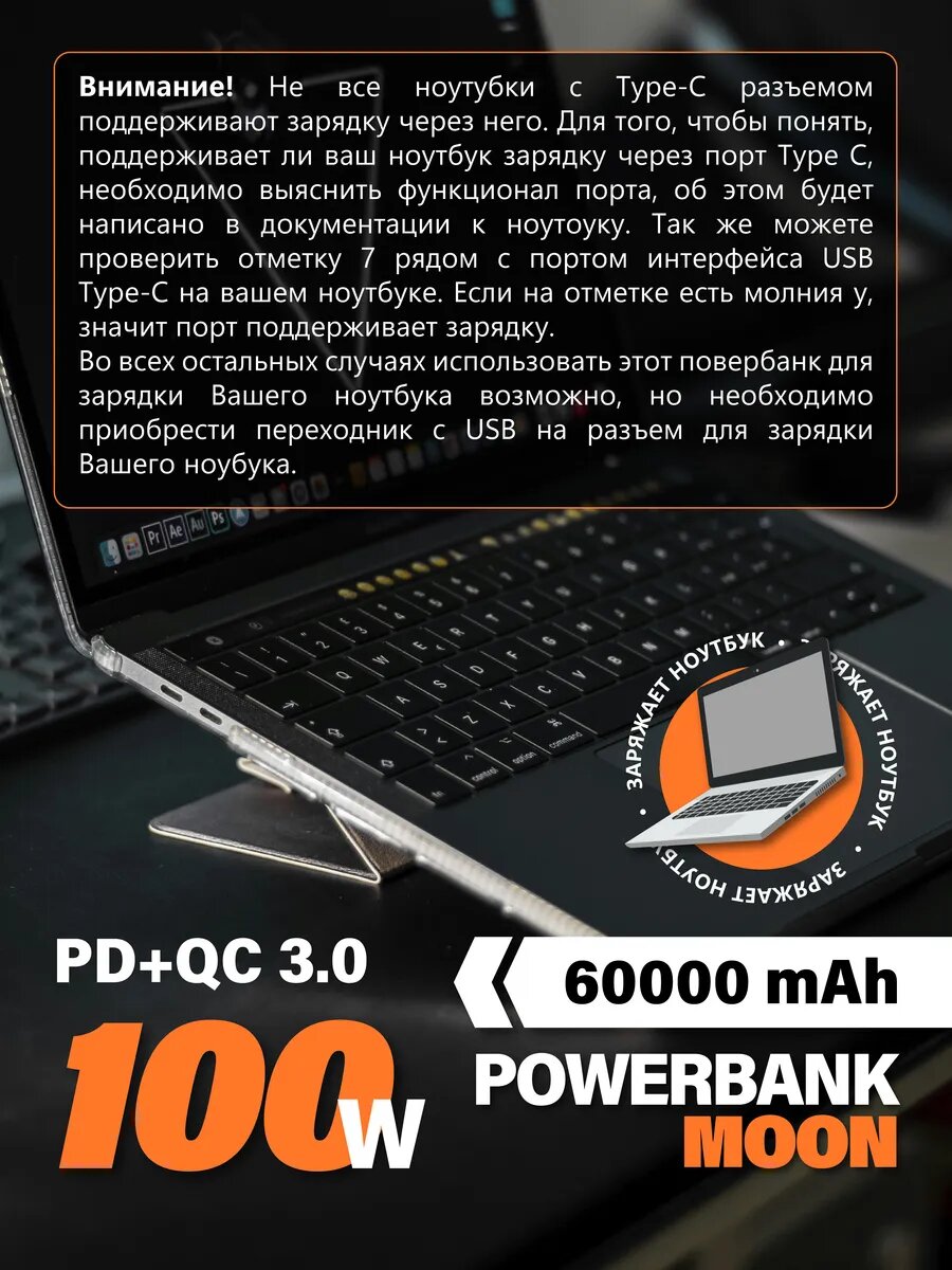 Повербанк 60000 mAh для телефона и ноутбука, MOON, PD+QC 3.0 max 100W фонарик, черный: сравнение цен, характеристики, фото, актуальное наличие и цены.