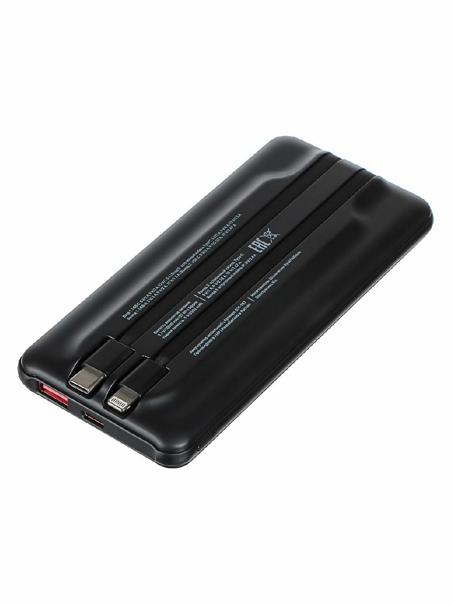 Купить Повербанк BY, 10000 мАч, 20W, встроенные кабели Type-C, iP, черный/ внешний аккумулятор для iphone и Android с доставкой по всей России.
