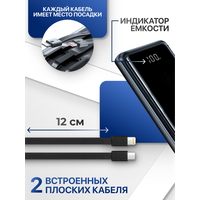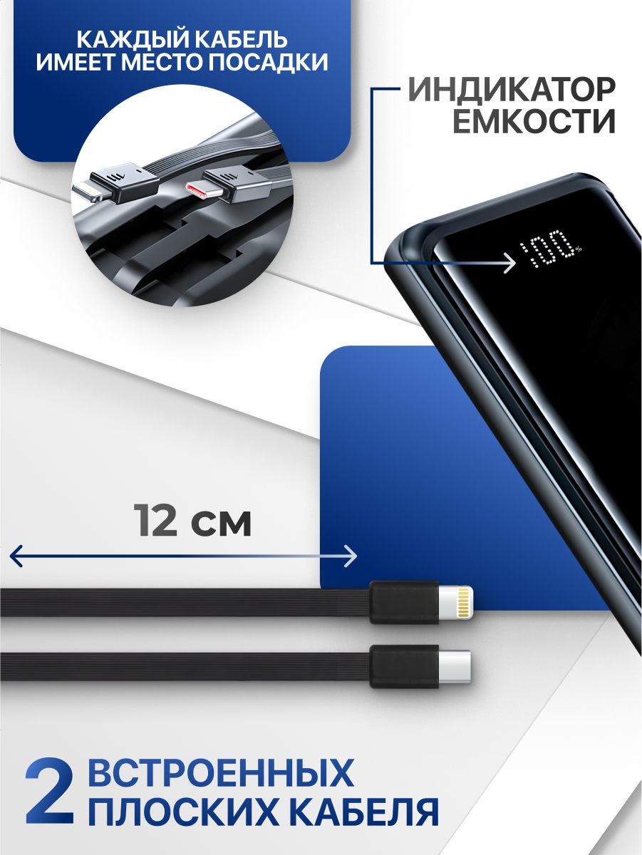 Этот пауэрбанк оснащен встроенными 2 проводами – type-c и lightning, благодаря чему его можно использовать сразу после покупки без дополнительных аксессуаров. В корпусе предусмотрены 2 кабеля, что обеспечивает удобство и универсальность. Теперь под рукой всегда будет всё необходимое для зарядки смартфона или планшета.