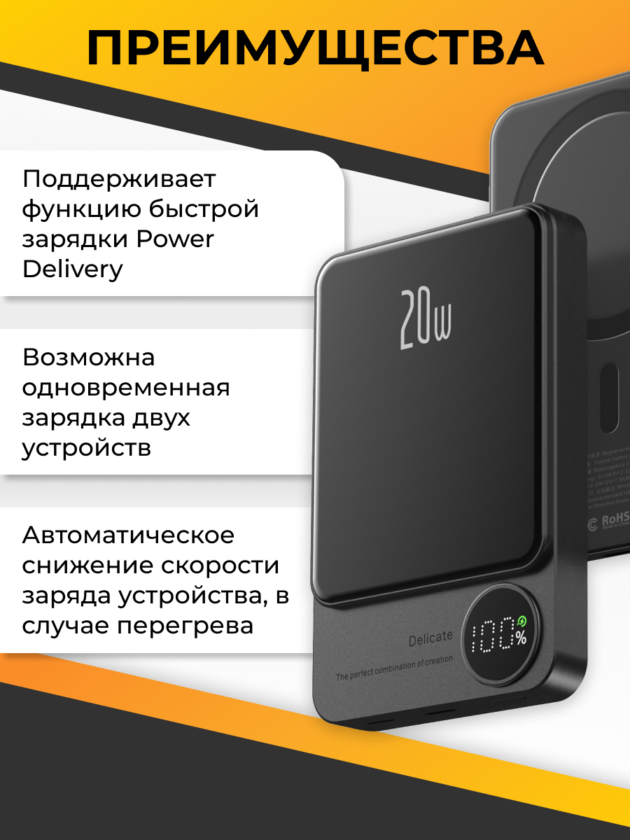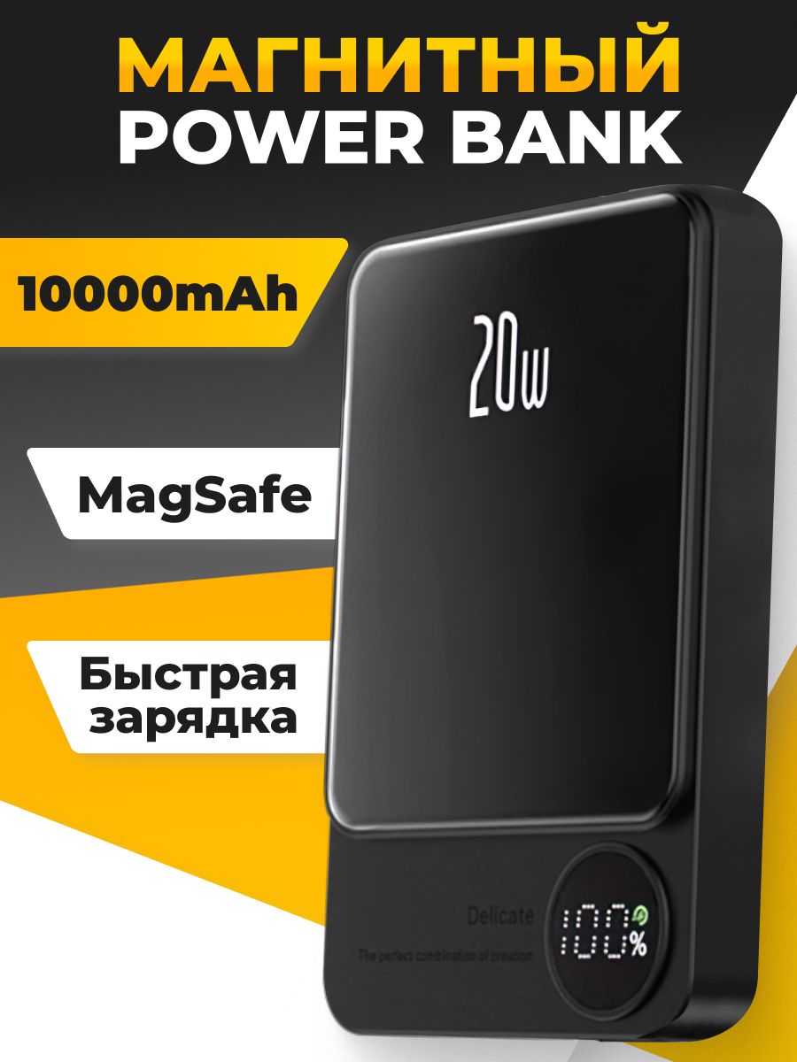 Повербанк для Айфона с быстрой беспроводной зарядкой MagSafe / Внешний аккумулятор Power Bank 20 Ватт 10000mAh / Черный: сравнение цен, характеристики, фото, актуальное наличие и цены.