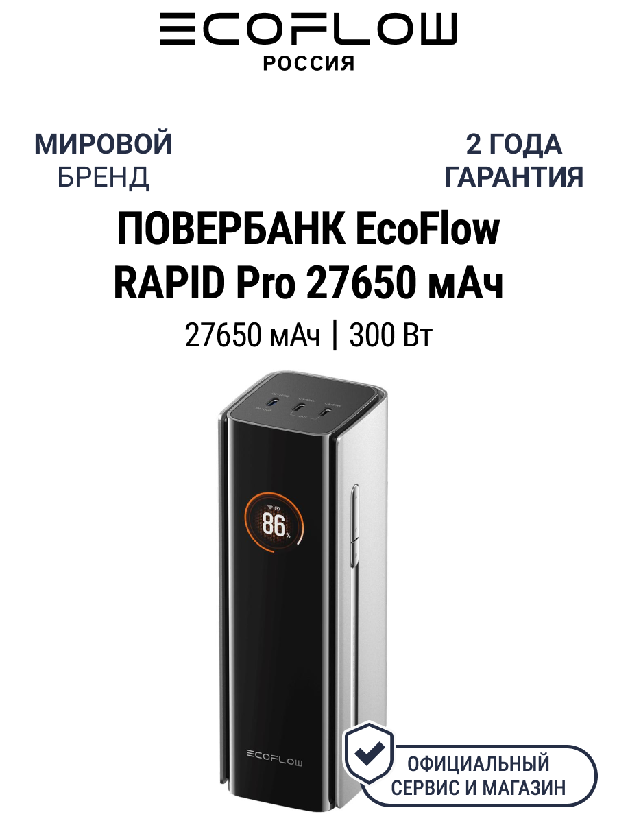 Купить Повербанк EcoFlow RAPID Pro (27650 мАч, 300 Вт, встроенный кабель 140 Вт) с доставкой по всей России. Повербанк EcoFlow RAPID Pro (27650 мАч, 300 Вт, встроенный кабель 140 Вт): сравнение цен, характеристики, фото, актуальное наличие и цены.