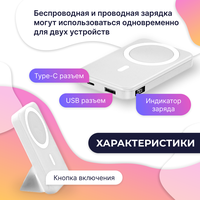Повербанк магнитный беспроводной для iPhone, 10000 mAh 20 Ватт, внешний аккумулятор на Айфон / Белый: сравнение цен, характеристики, фото, актуальное наличие и цены.