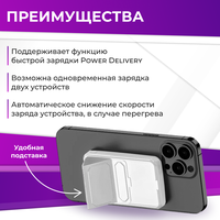 Благодаря емкости 10000mAh, Magnet Wireless Power Bank A27-1 способен многократно заряжать ваш смартфон, что особенно удобно в путешествиях или при отсутствии доступа к электросети. Быстрая зарядка мощностью 20W позволяет заряжать ваши устройства максимально быстро и безопасно.