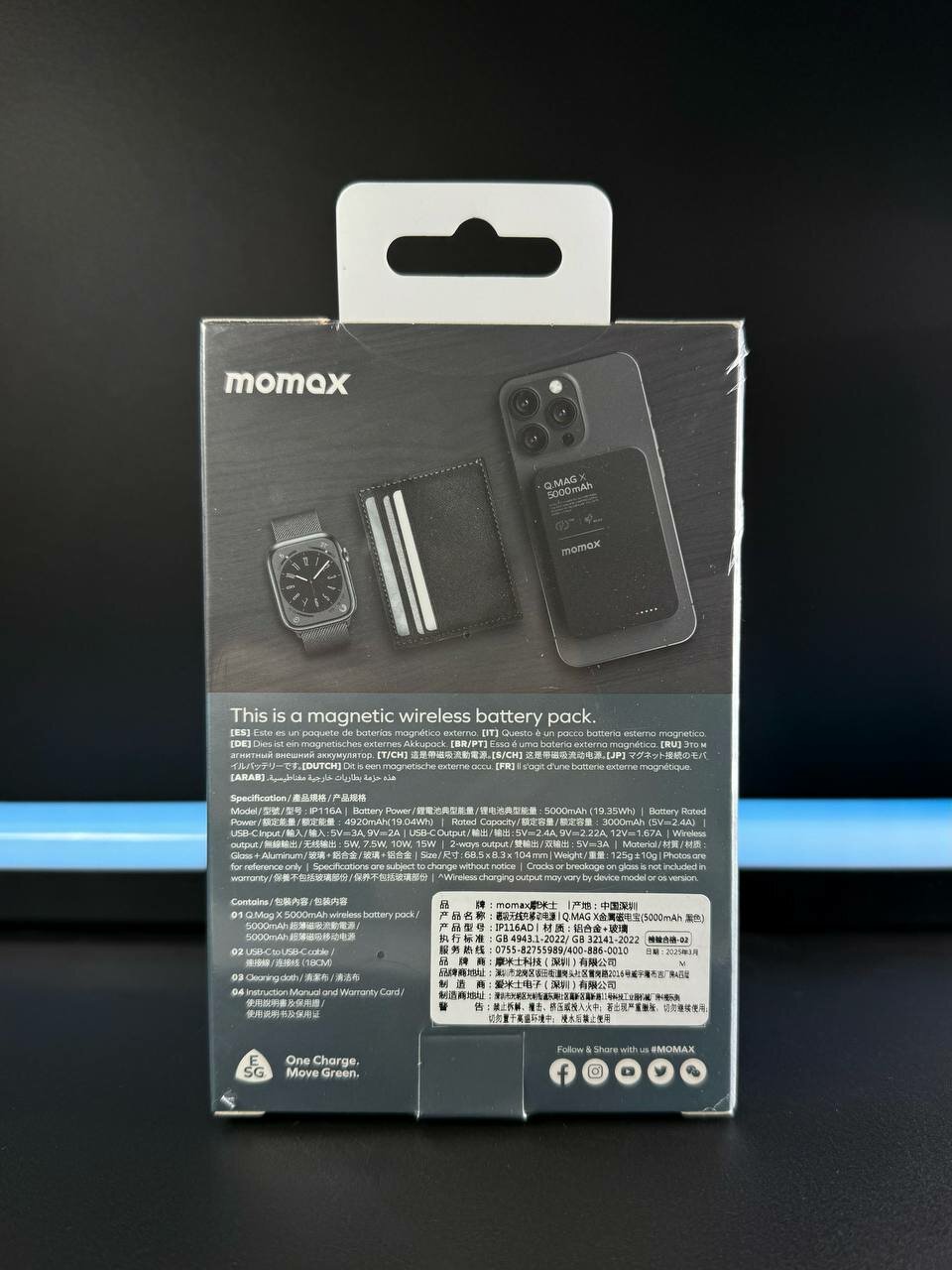 Внешний магнитный аккумулятор повербанк беспроводной PowerBank Momax Q.Mag X 5000 mAh Чёрный: сравнение цен, характеристики, фото, актуальное наличие и цены.