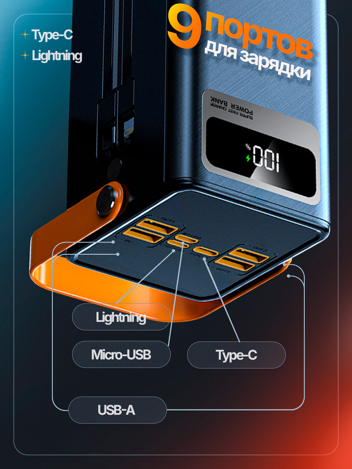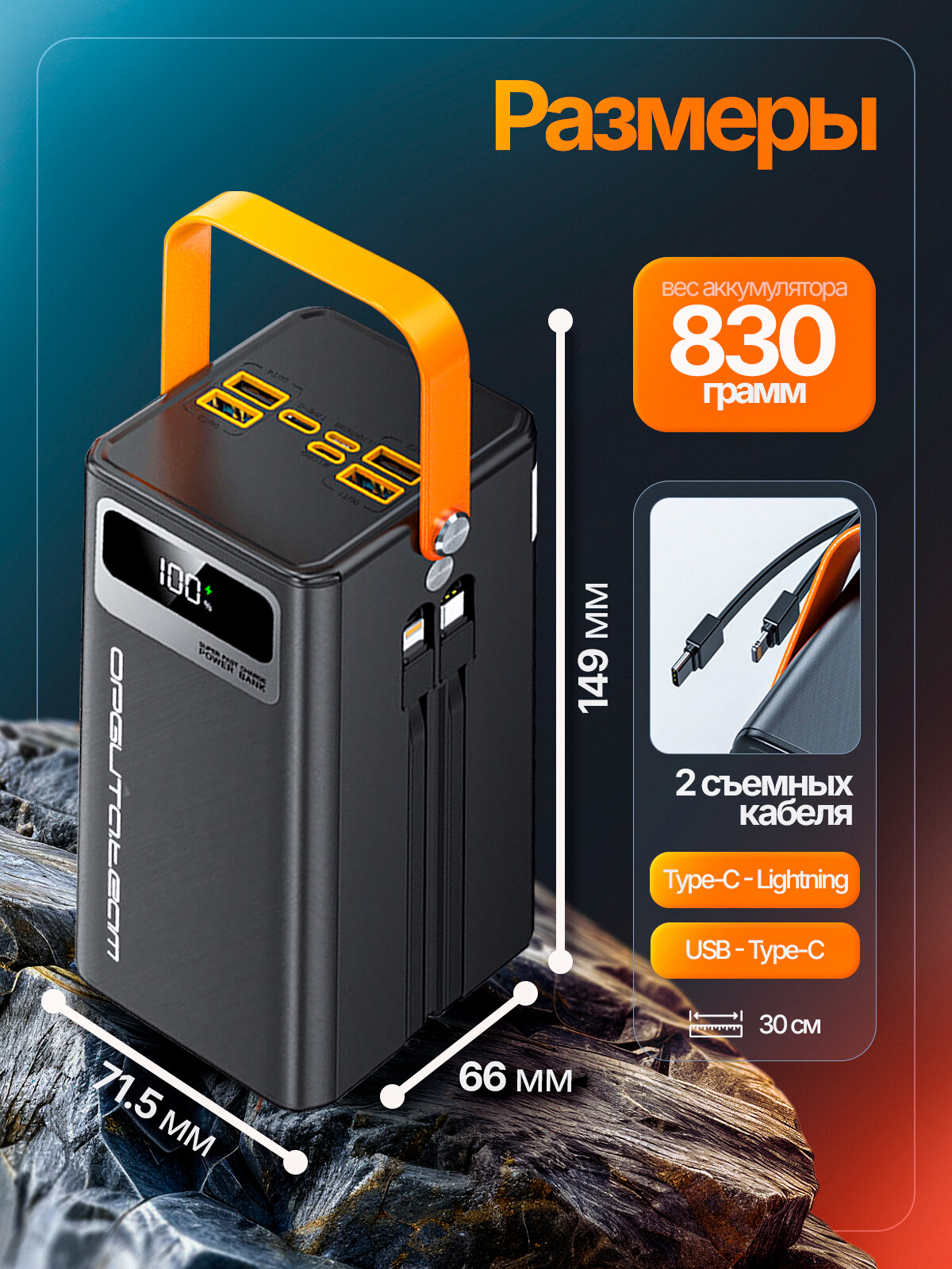 Повербанк с быстрой зарядкой имеет мощностью 22.5 Вт и емкостью 50 000 mAh, этот повербанк обеспечивает непрерывное питание даже для самых энергоемких гаджетов. Повербанк для ноутбука оснащен 7 выходами, включая выход type-c и выход lightning, что позволяет заряжать различные устройства одновременно. Благодаря функции быстрой зарядки павербанк, вы сможете зарядить свои устройства в рекордно короткие сроки, экономя время и обеспечивая бесперебойную работу.