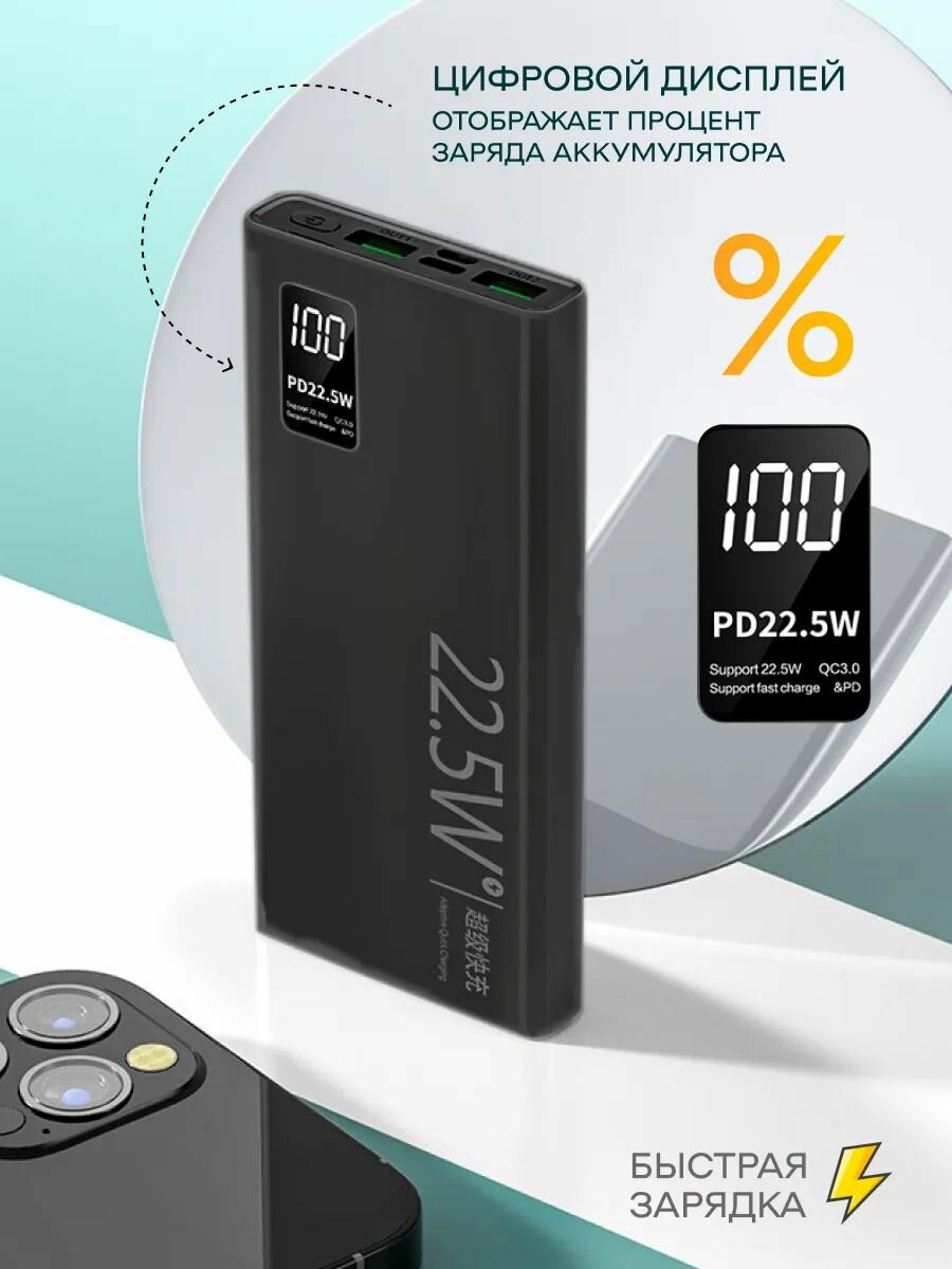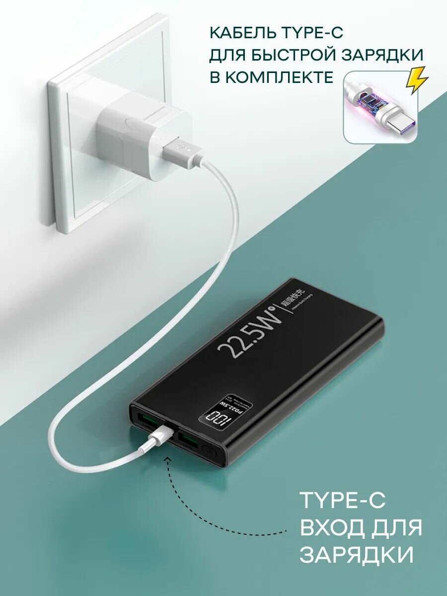Power Bank с быстрой зарядкой, Type-C кабель для быстрой зарядки, внешний аккумулятор