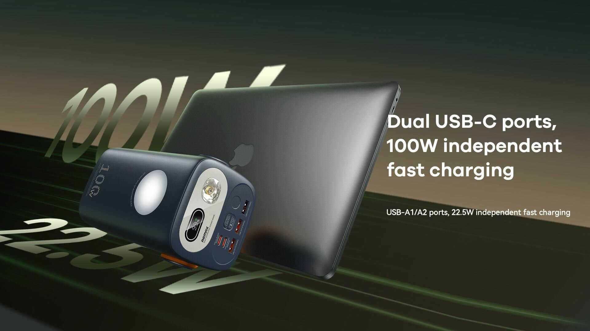 Повербанк (powerbank) Remax RPP-100, 60000 mAh, 100W, QC+ PD, (LED фонарь): сравнение цен, характеристики, фото, актуальное наличие и цены.