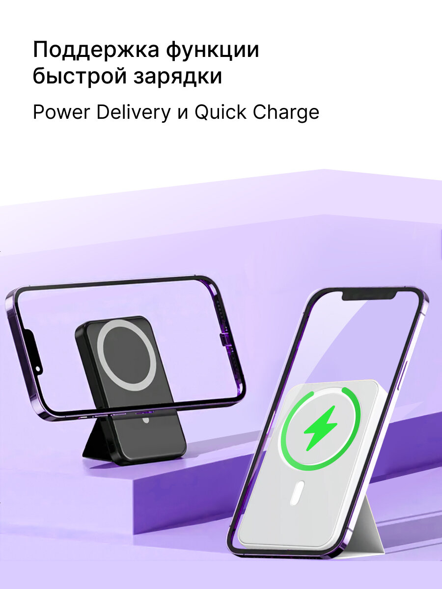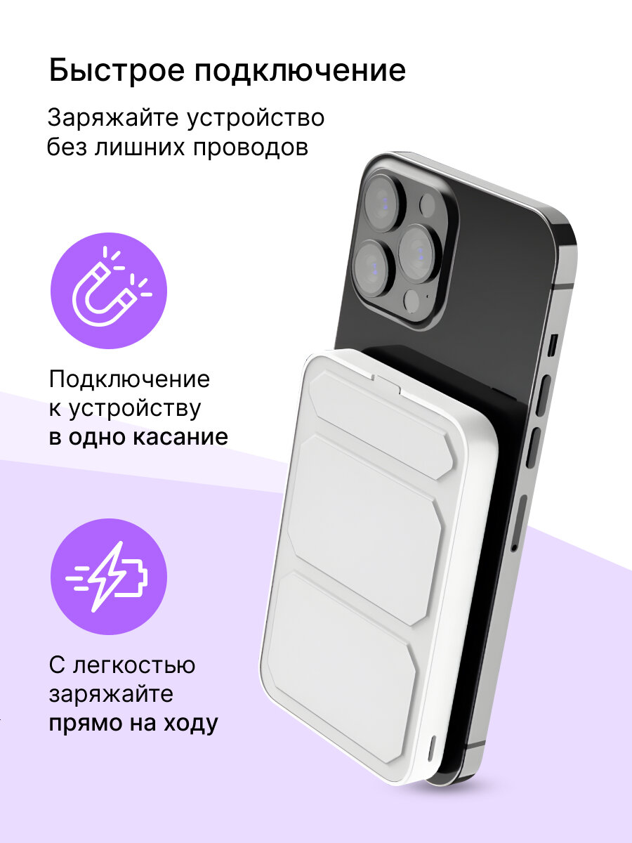 Купить Повербанк для Айфона с быстрой зарядкой, беспроводная зарядка для iPhone, MagSafe Power bank , 10000mAh , Белый с доставкой по всей России.