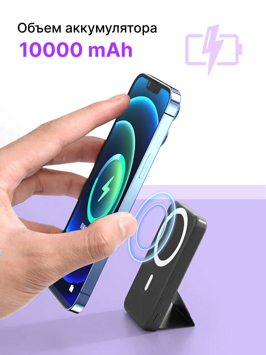 Повербанк для Айфона с быстрой зарядкой, беспроводная зарядка для iPhone, MagSafe Power bank , 10000mAh , Белый: сравнение цен, характеристики, фото, актуальное наличие и цены.