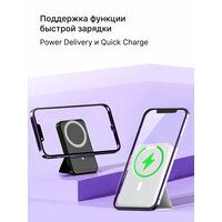 Данный power bank обеспечивает не только беспроводную подзарядку по технологии magsafe стандарта, но также позволяет использовать проводные методы через кабель c Type-C и USB Type-A для максимальной универсальности. Он легко справится с энергопотреблением современных смартфонов благодаря мощности 20 ватт. В комплектацию товара входит кабель Type-C и магнитное кольцо.