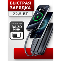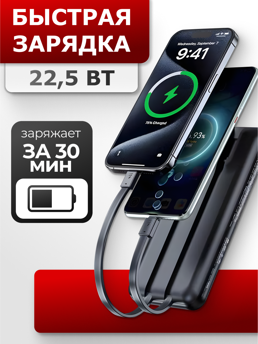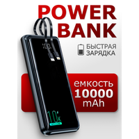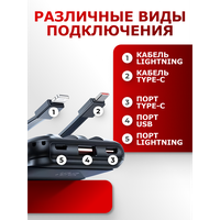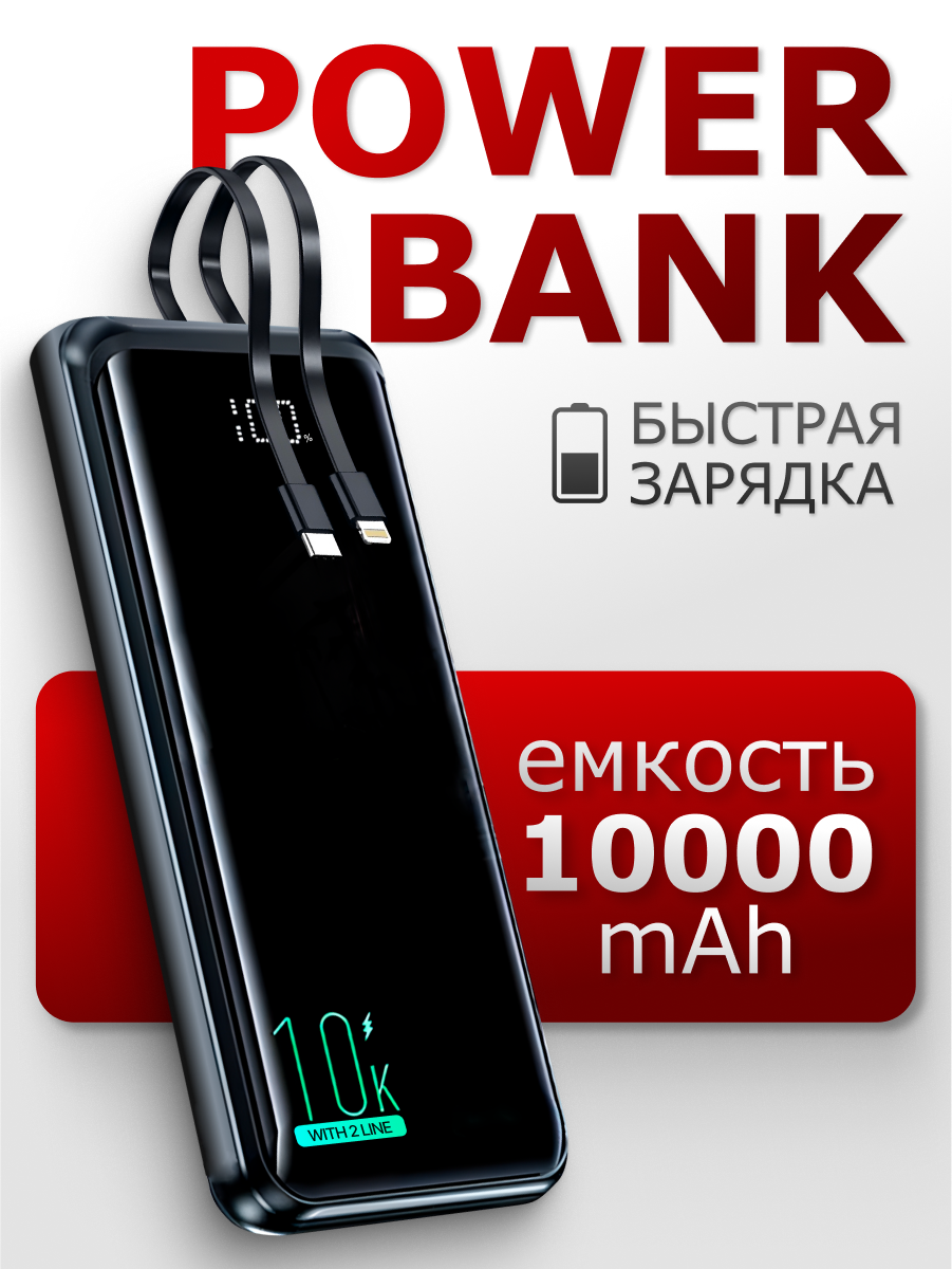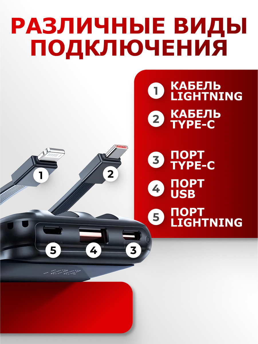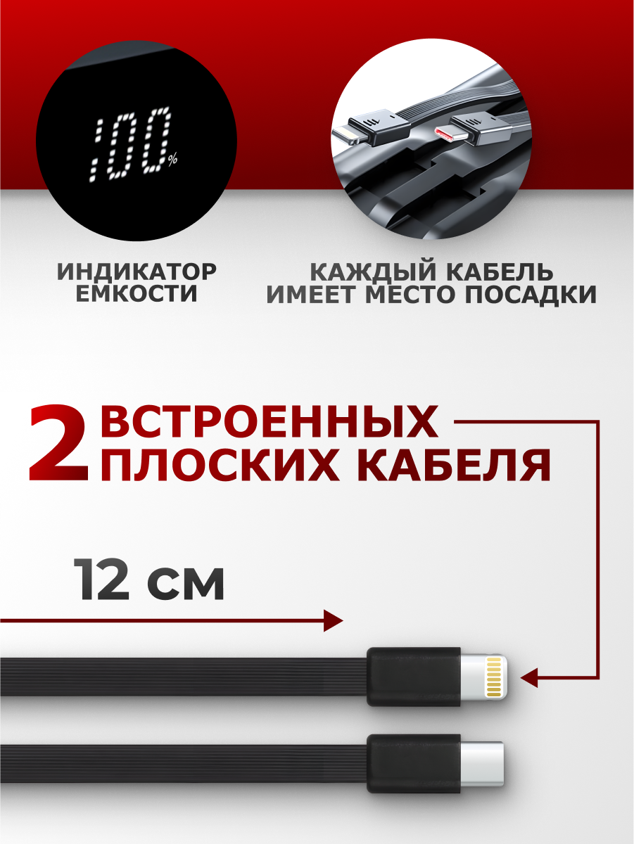 Купить Повербанк, Tranyoo T-K16, 10000 mAh с двумя кабелями Type-C, Lightning / Внешний аккумулятор для телефона / Черный с доставкой по всей России.