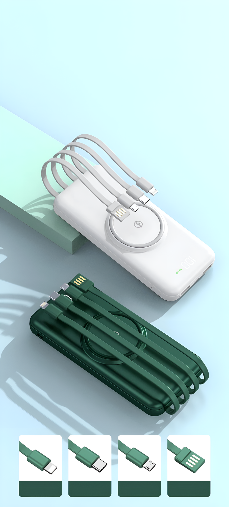 Портативный аккумулятор 20000 мАч, с беспроводной зарядкой, 4 кабеля, 3 дополнительных Usb-порта, белый: сравнение цен, характеристики, фото, актуальное наличие и цены.