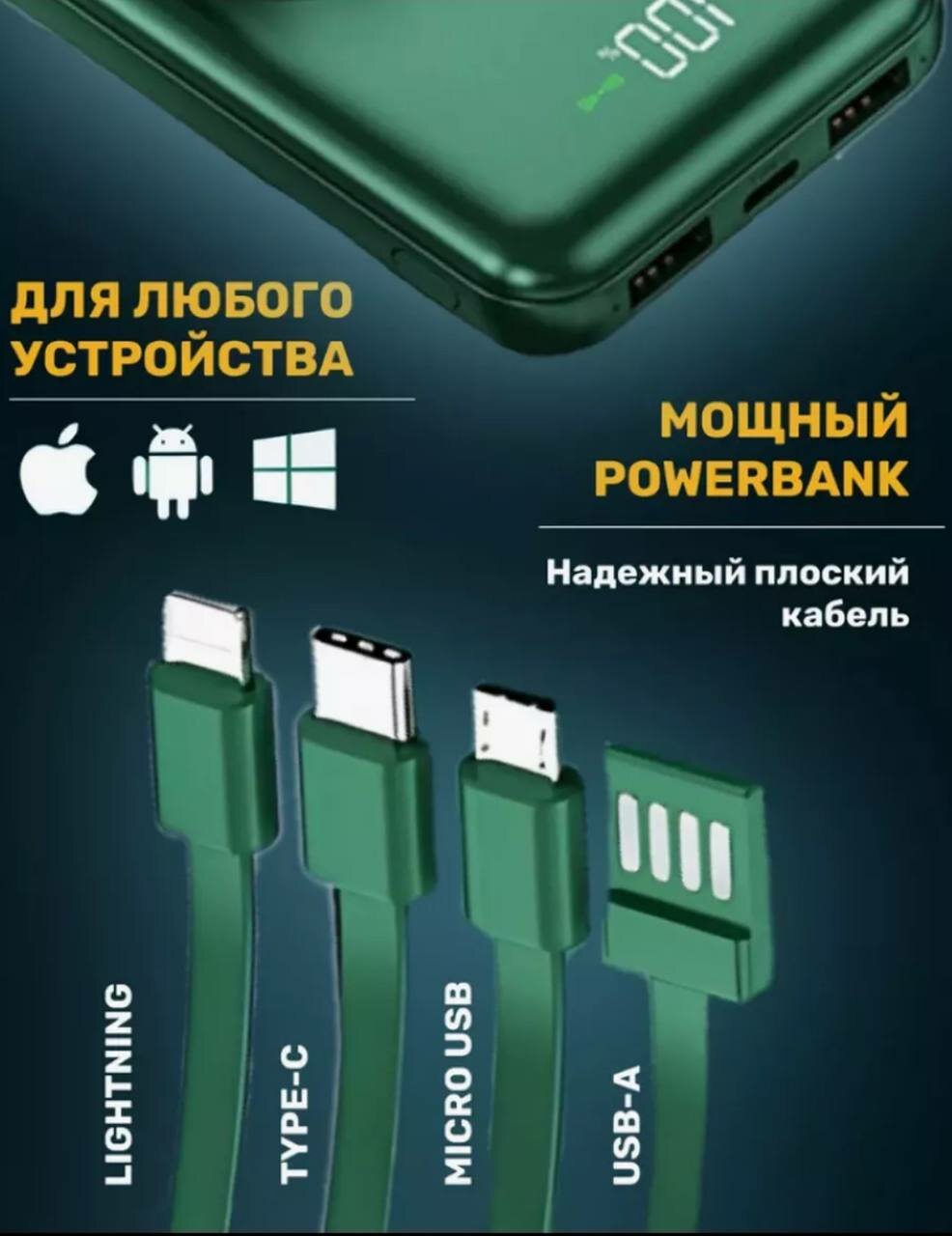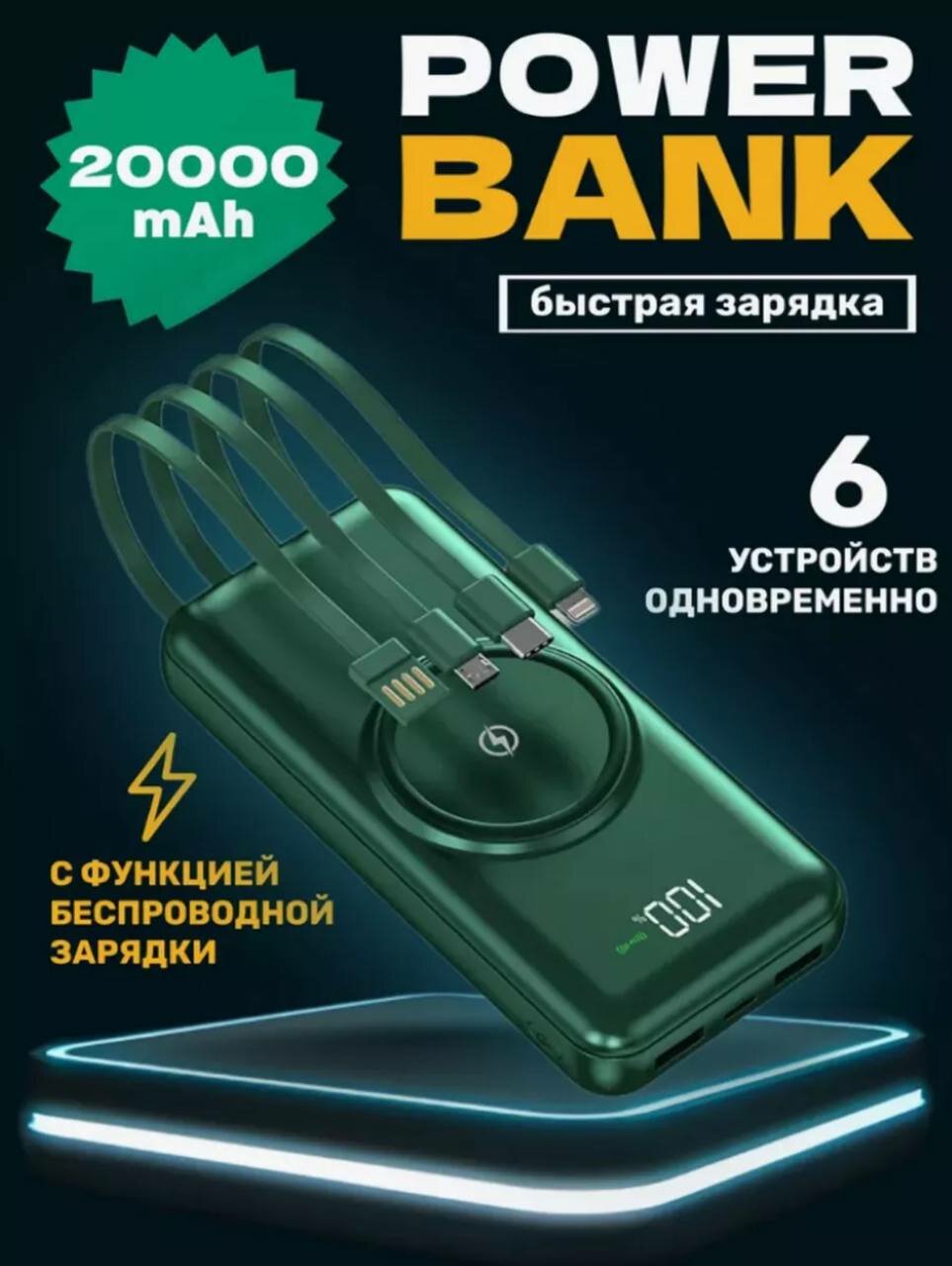 Купить Повербанк 30000mAh, внешний аккумулятор с беспроводной зарядкой для iPhone и Android, Power Bank 4 провода, Зеленый с доставкой по всей России. Повербанк 30000mAh, внешний аккумулятор с беспроводной зарядкой для iPhone и Android, Power Bank 4 провода, Зеленый: сравнение цен, характеристики, фото, актуальное наличие и цены.