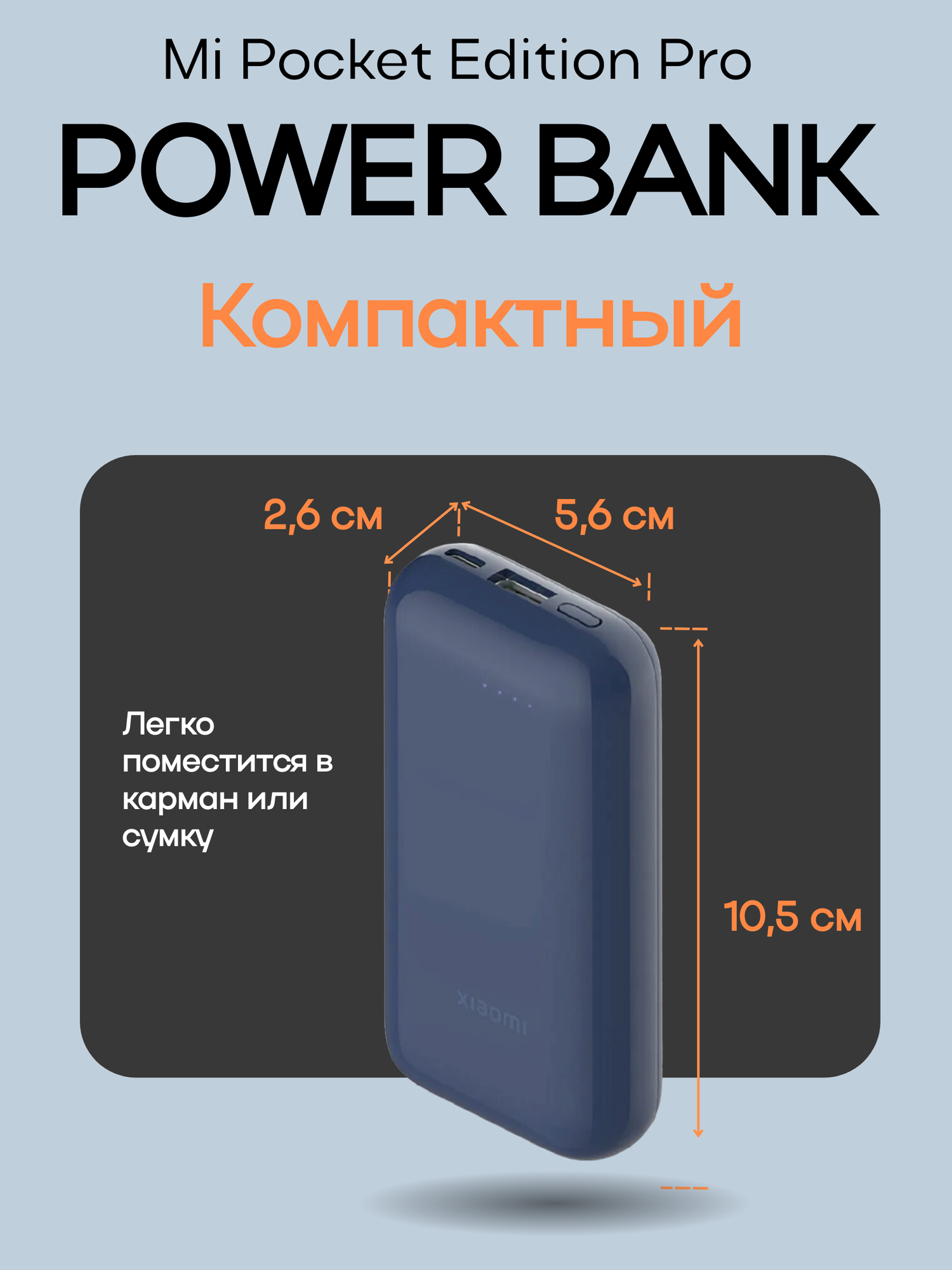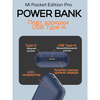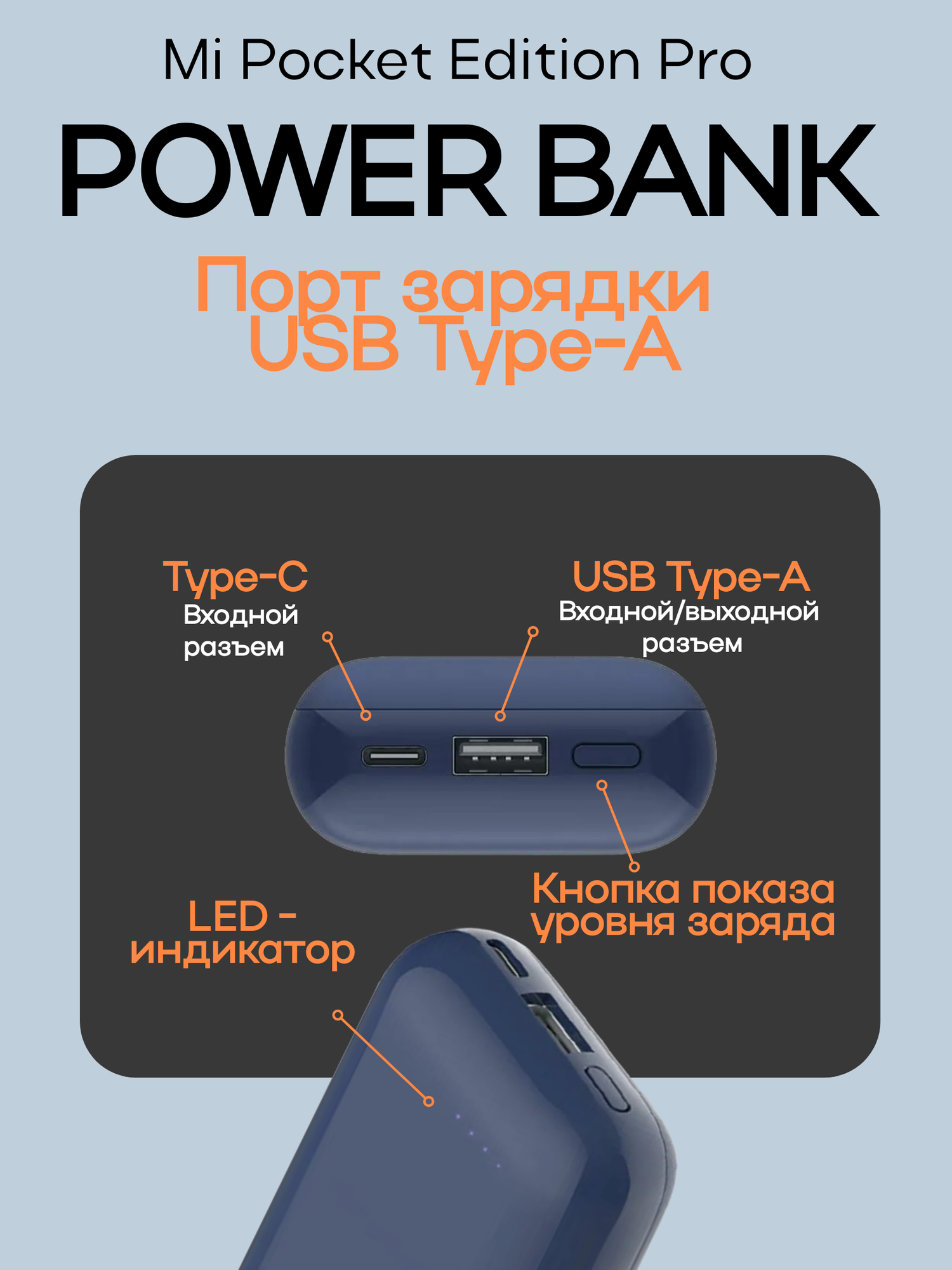 Купить Повербанк внешний аккумулятор Xiaomi мини 10000 mAh. USB Type-C кабель в комплекте, синий с доставкой по всей России.