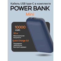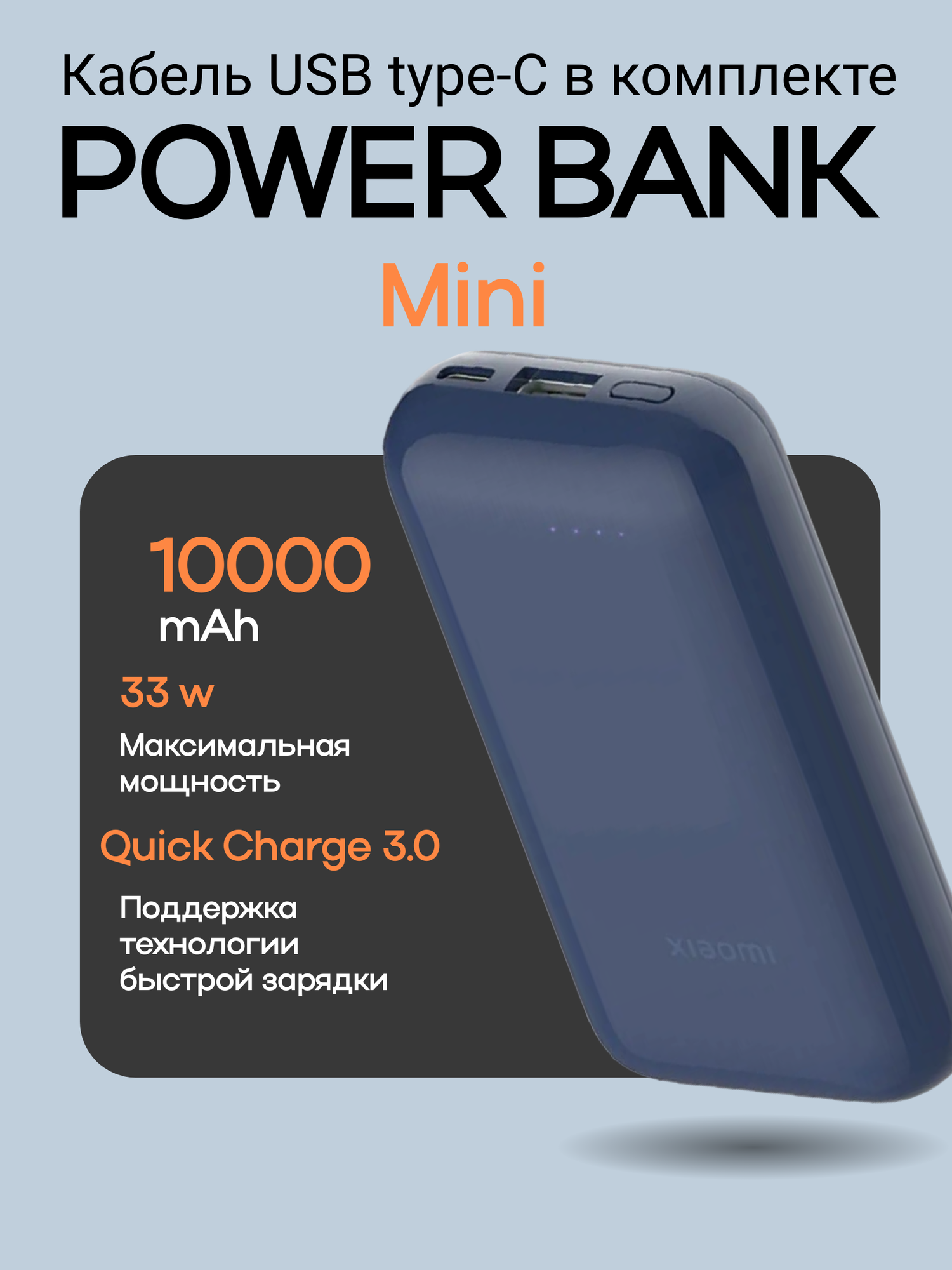 Повербанк внешний аккумулятор Xiaomi мини 10000 mAh. USB Type-C кабель в комплекте, синий: сравнение цен, характеристики, фото, актуальное наличие и цены.