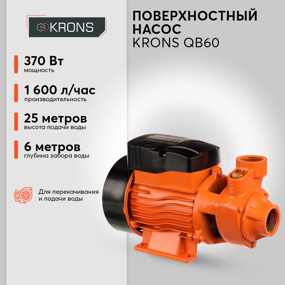 Купить Поверхностный насос KRONS QB60, 370 Вт 1600 л/час напор 25 м с доставкой по всей России. Поверхностный насос KRONS QB60, 370 Вт 1600 л/час напор 25 м: сравнение цен, характеристики, фото, актуальное наличие и цены.