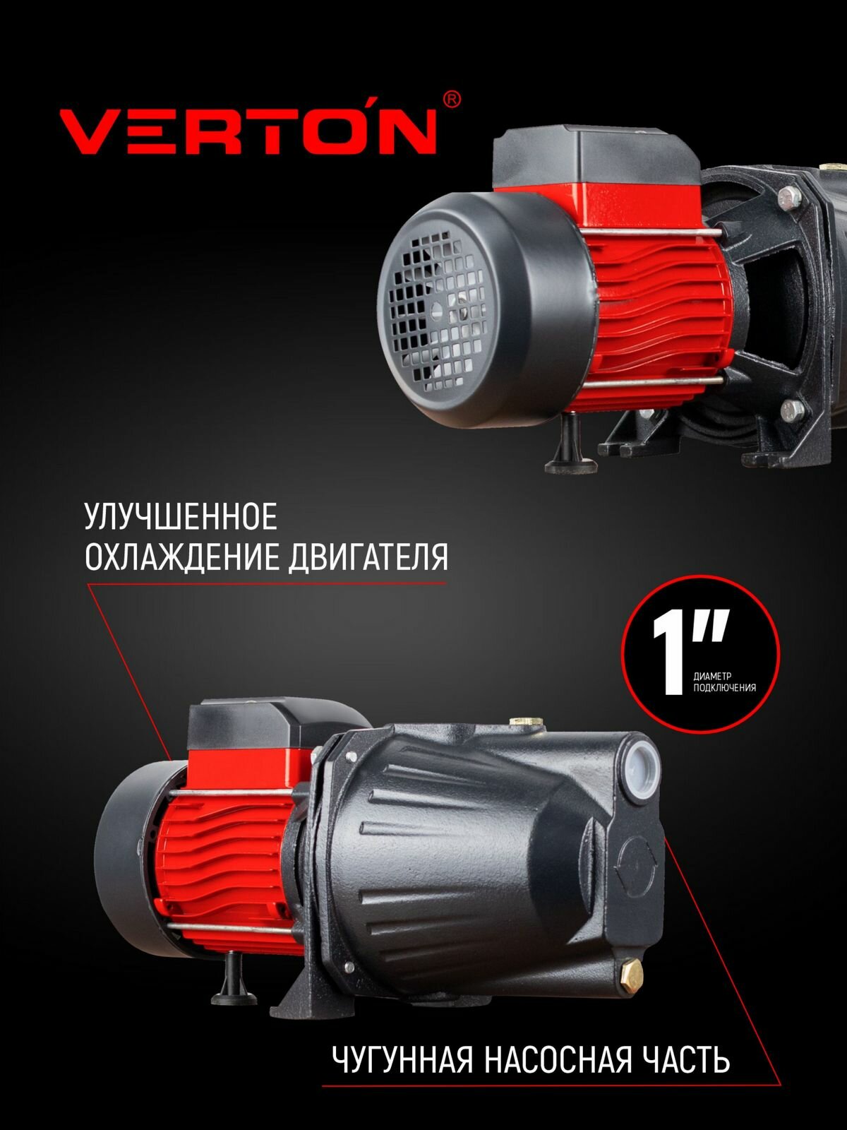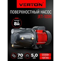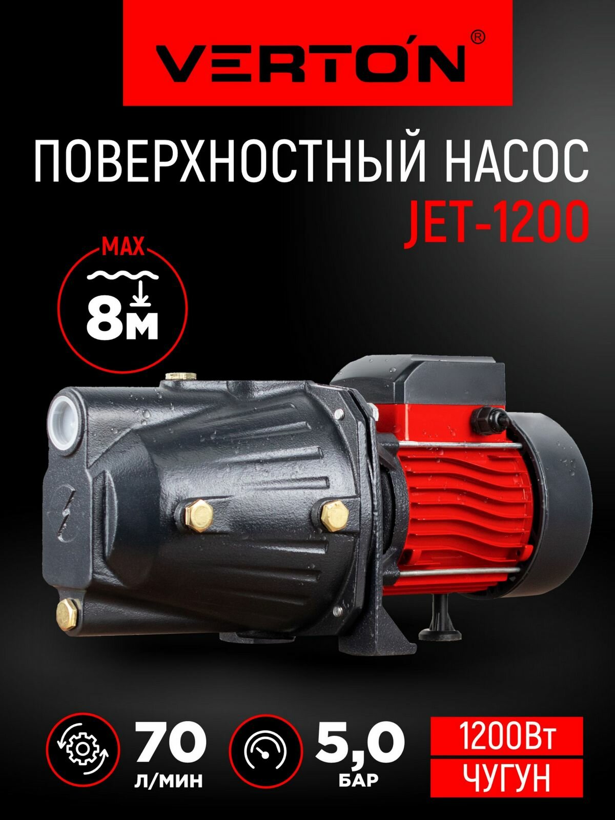 Поверхностный насос Verton AQUA JET1200 (1200Вт, max произв.70л/мин, max h55м, max глуб.8м,1″,5.0 бар, чугун. корпус): сравнение цен, характеристики, фото, актуальное наличие и цены.