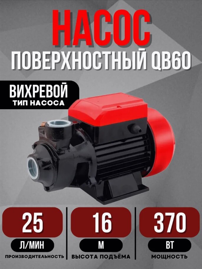 Поверхностный вихревой насос EDON QB60, 25 л/мин, 370 Вт, высота подъёма 16 м: сравнение цен, характеристики, фото, актуальное наличие и цены.