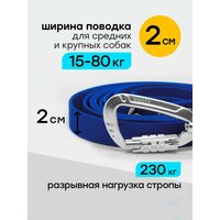 --Легкий, но прочный биотановый поводок обладает приятной на ощупь текстурой, препятствующей скольжению в руке. --Поводок снабжен прочным усиленным карабином, с автоматической блокировкой, карабин вращается на 360 градусов, и не позволяет закручиваться поводку при движении. --Карабин выдерживает большие нагрузки, до 400 кг и резкие рывки даже крупных собак. --У поводка удобная и мягкая ручка петля, длиной 15 см, внизу которой расположено кольцо для крепления холдера (контейнера) для пакетов для уборки за собакой. --Водонепроницаемая прорезиненная стропа с внутренним армирующим слоем выдерживает нагрузку до 230 кг.