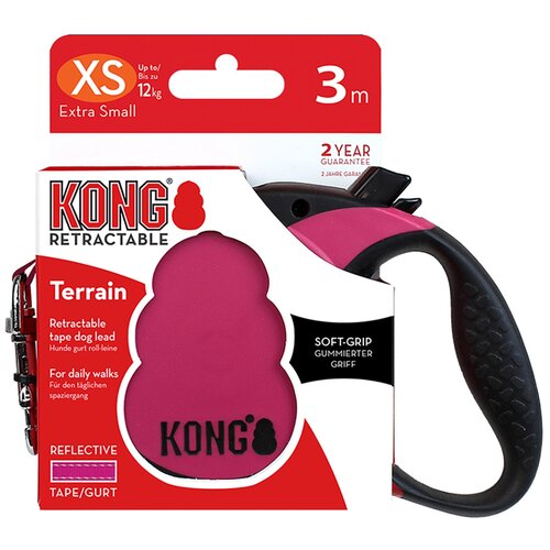 Поводок-рулетка Kong Terrain XS лента фуксия (до 12 кг) 3 метра - поводок KONG Terrain со светоотражающими элементами - идеальный аксессуар для прогулок ранним утром или поздним вечером.