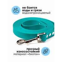 Поводок из биотана 3 м, ширина 16 мм, Woofy «Geksa», прорезиненный, водостойкий, бирюзовый