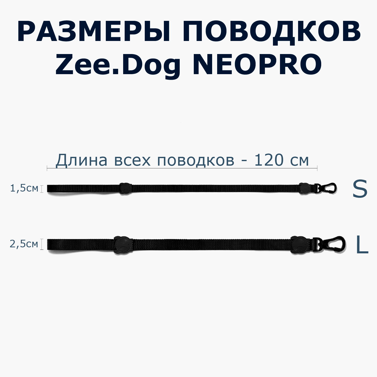 - Размеры карабина меняются с размером поводка;