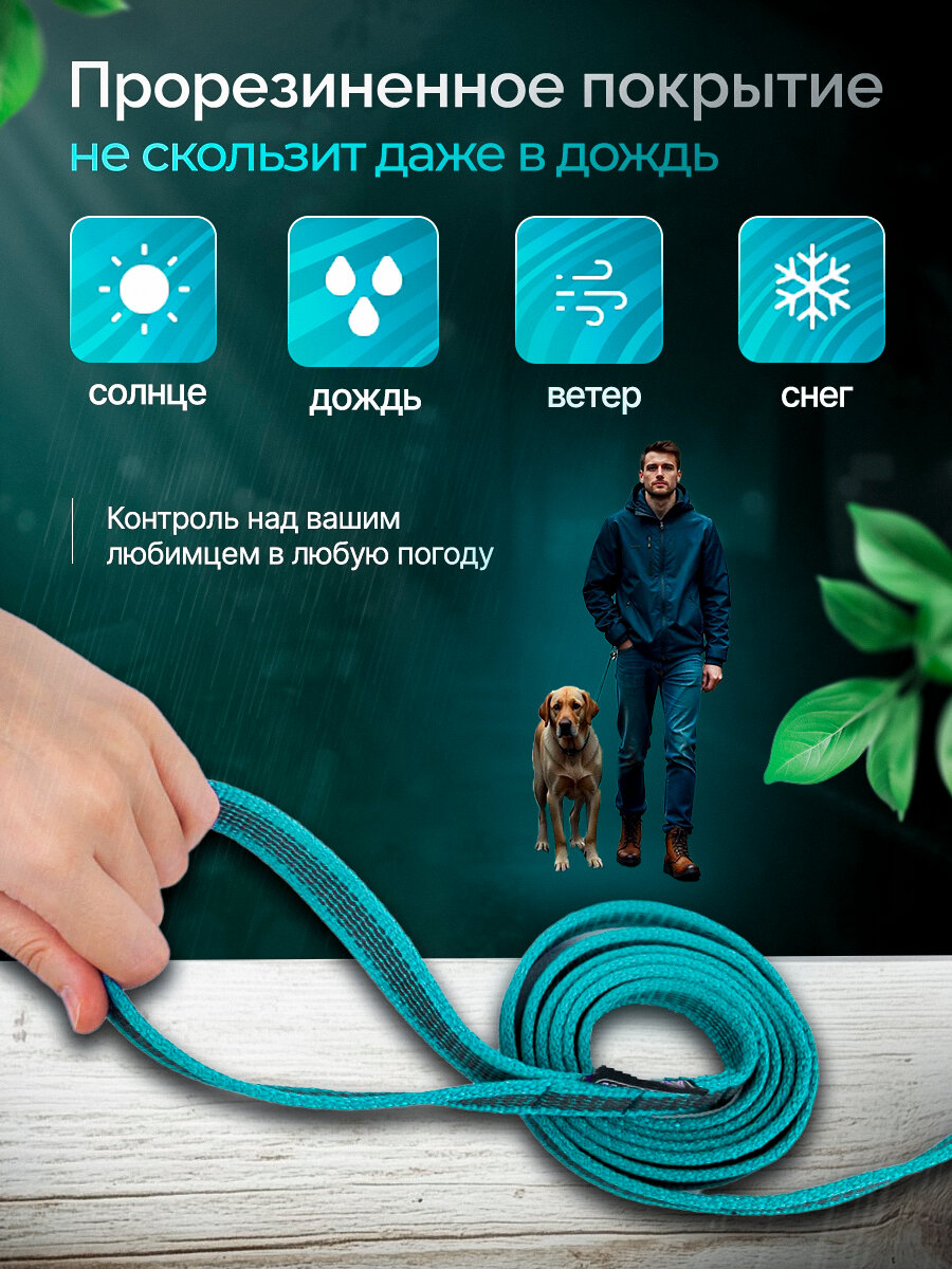 Поводок прорезиненный нескользящий MagWay, для собак средних и крупных пород, ширина 18мм, цвет бирюзовый, длина 2 метра: сравнение цен, характеристики, фото, актуальное наличие и цены.