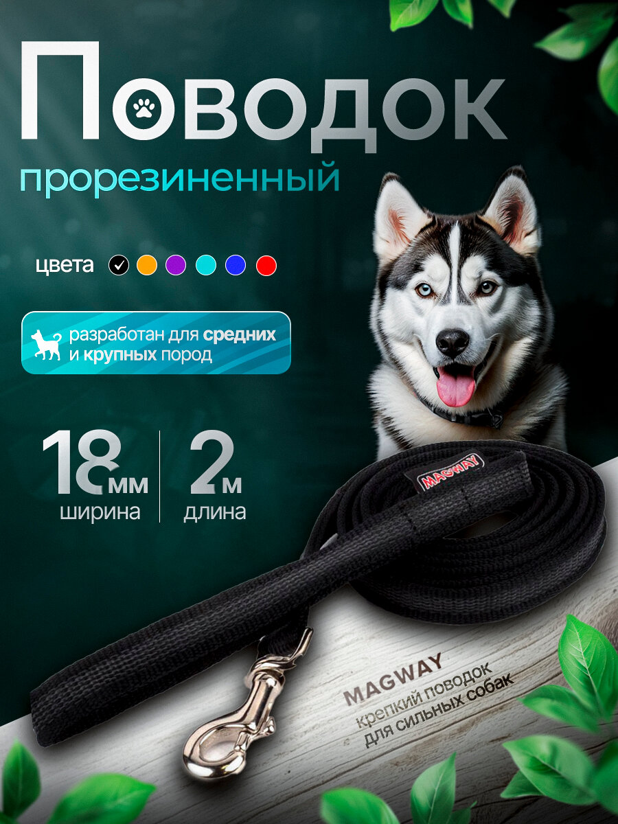 Поводок прорезиненный нескользящий MagWay, для собак средних и крупных пород, ширина 18мм, цвет черный, длина 2 метра: сравнение цен, характеристики, фото, актуальное наличие и цены.