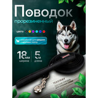 Купить Поводок прорезиненный нескользящий MagWay, для собак средних и крупных пород, ширина 18мм, цвет черный, длина 5 метров с доставкой по всей России.