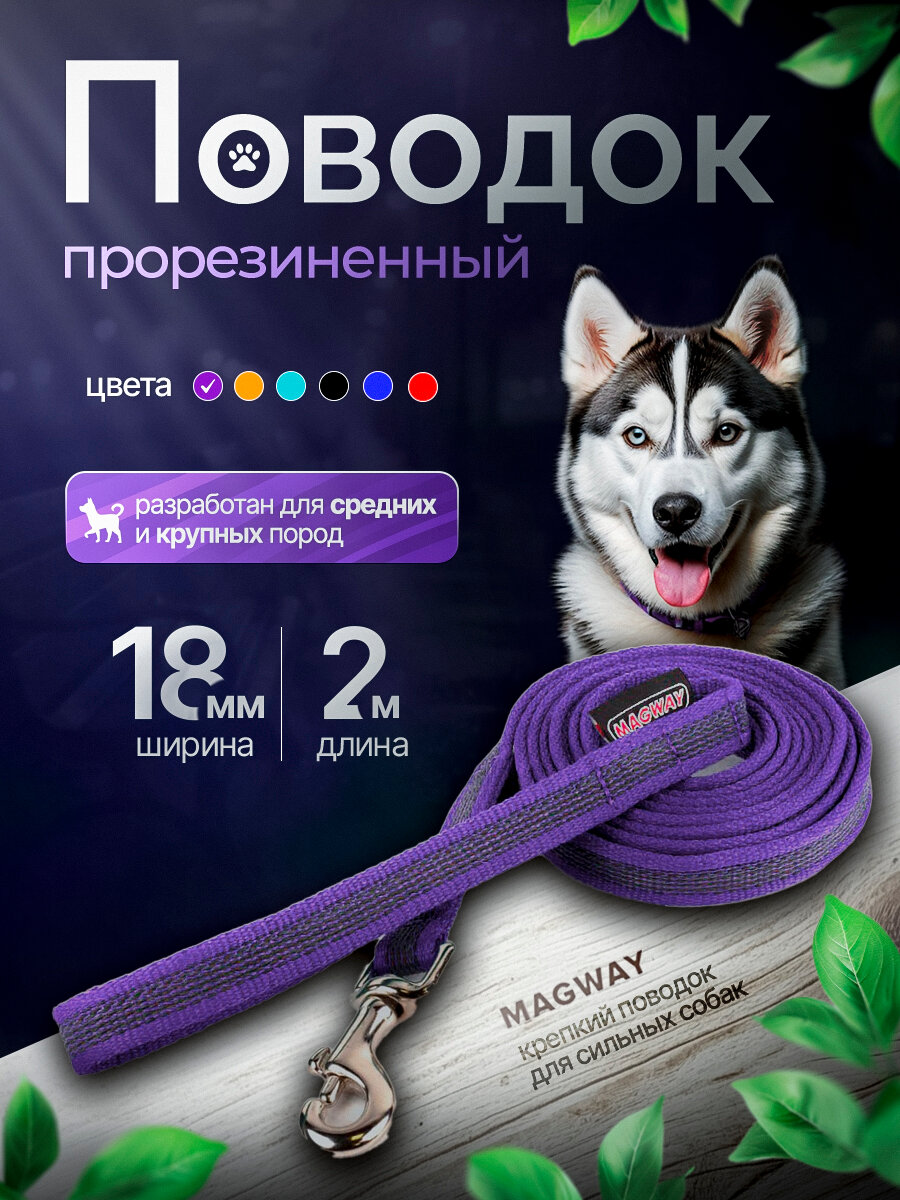 Поводок прорезиненный нескользящий MagWay, для собак средних и крупных пород, ширина 18мм, цвет фиолетовый, длина 2 метра: сравнение цен, характеристики, фото, актуальное наличие и цены.