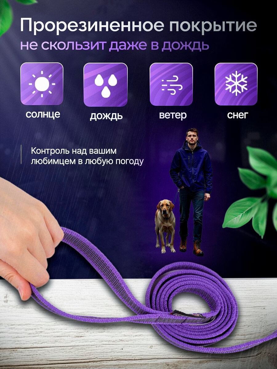Купить Поводок прорезиненный нескользящий MagWay, для собак средних и крупных пород, ширина 18мм, цвет фиолетовый, длина 5 метров с доставкой по всей России.