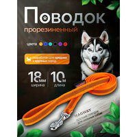 Купить Поводок прорезиненный нескользящий MagWay, для собак средних и крупных пород, ширина 18мм, цвет оранжевый, длина 10 метров с доставкой по всей России.