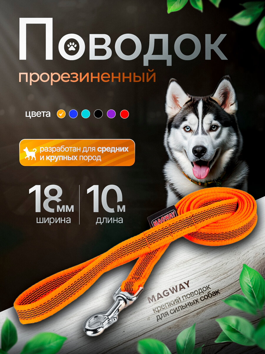 Поводок прорезиненный нескользящий MagWay, для собак средних и крупных пород, ширина 18мм, цвет оранжевый, длина 10 метров: сравнение цен, характеристики, фото, актуальное наличие и цены.