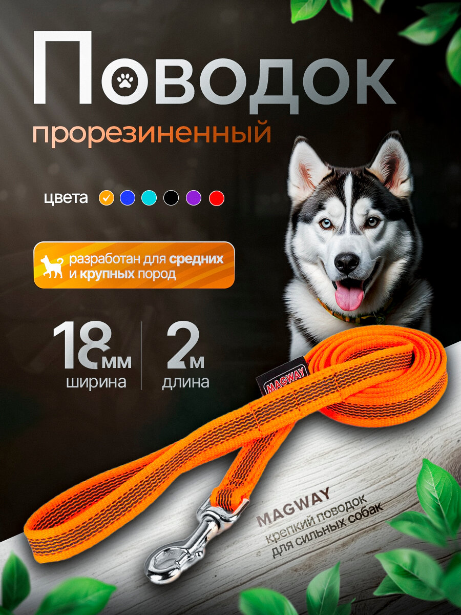Поводок прорезиненный нескользящий MagWay, для собак средних и крупных пород, ширина 18мм, цвет оранжевый, длина 2 метра: сравнение цен, характеристики, фото, актуальное наличие и цены.