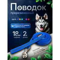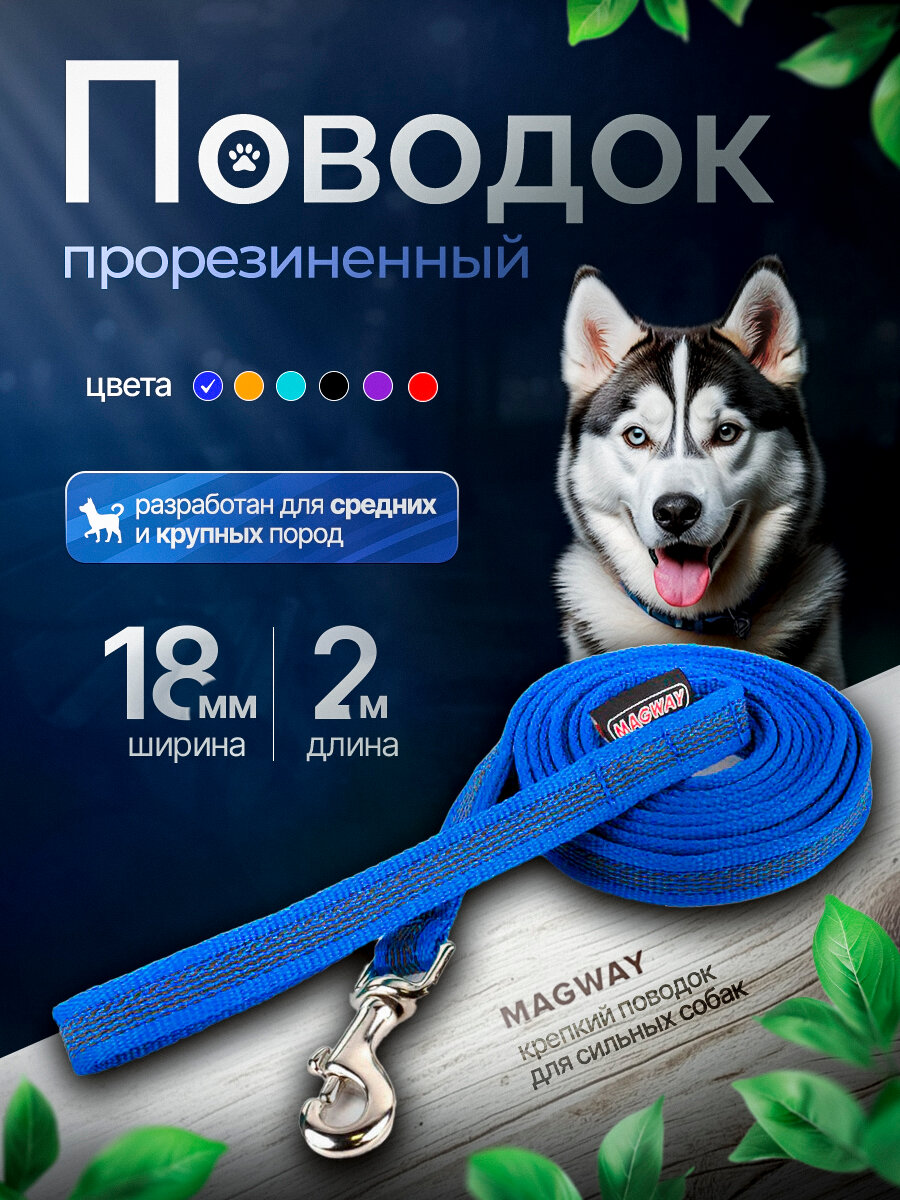 Купить Поводок прорезиненный нескользящий MagWay, для собак средних и крупных пород, ширина 18мм, цвет синий, длина 2 метра с доставкой по всей России.