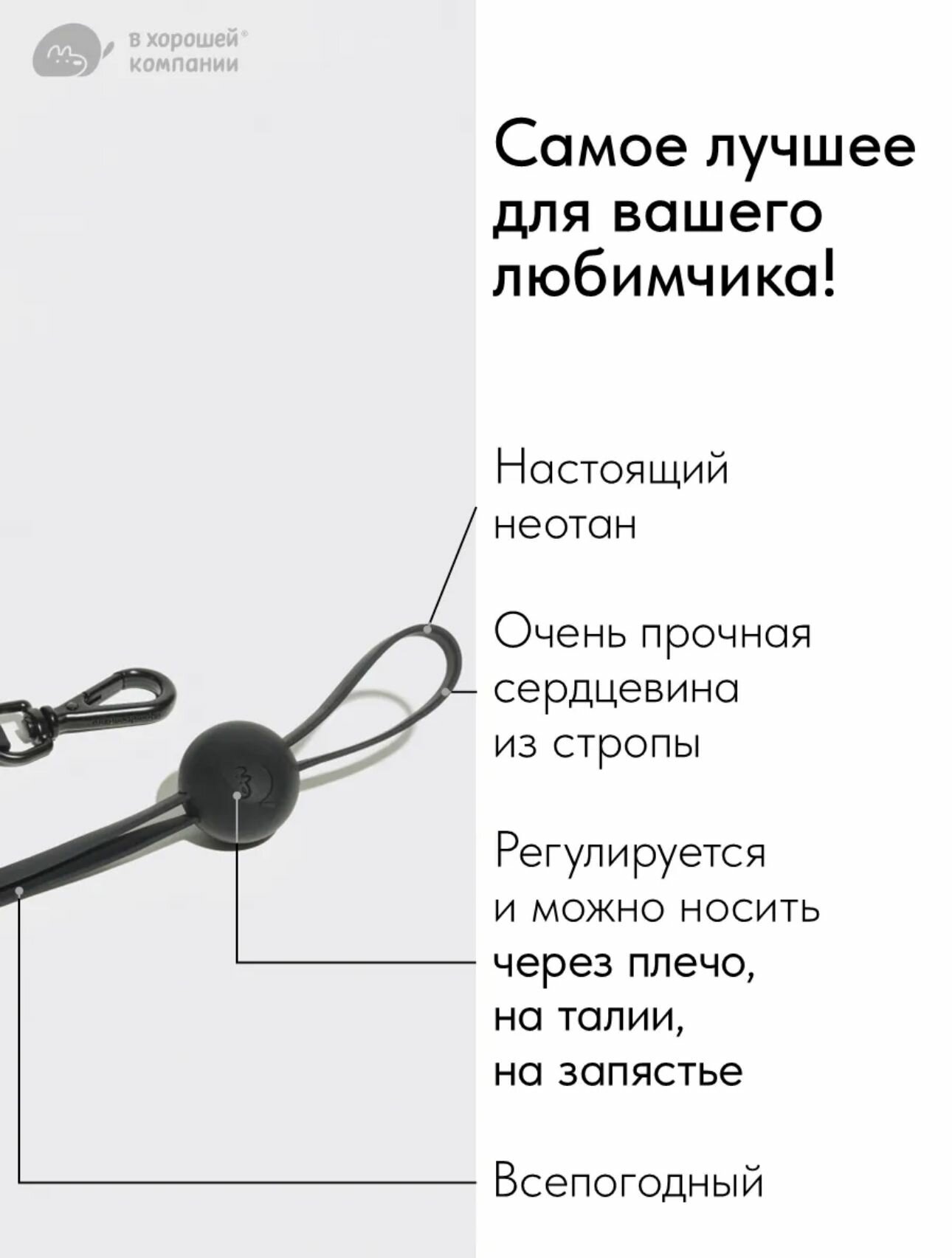 Поводок регулируемый для собак мелких пород и кошек, перестежка из неотана IN GOOD COMPANY (Слим/ 6м / Дикий Черный): сравнение цен, характеристики, фото, актуальное наличие и цены.