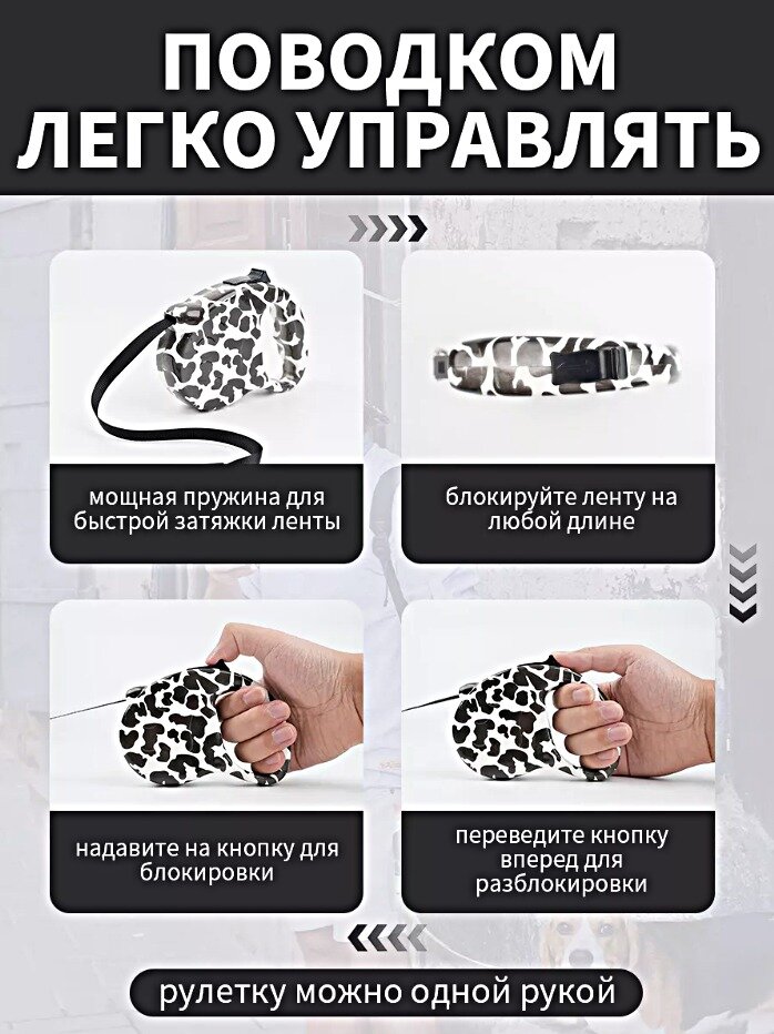 Поводок для мелких пород собак, рулетка 5м - это надежный и удобный аксессуар для прогулок, тренировок и занятий спортом с вашим питомцем.