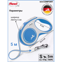 Поводок-рулетка Flexi New Comfort S 5 м 15 кг, синий.
