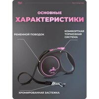 Изготовлена из высококачественных материалов, что делает ее устойчивой к жеванию и разрывам. Автоматический механизм с лентой позволяет вашему питомцу свободно исследовать окрестности, сохраняя при этом вашу связь. Длина легко регулируется с помощью практичной рукоятки удобного размера, которая создает надежный захват.
