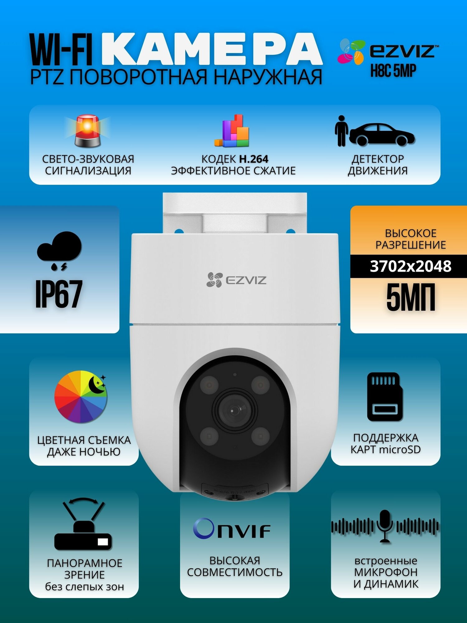 Купить Камера видеонаблюдения EZVIZ CS-H8C 5 mp wi-fi для улицы поворотная с доставкой по всей России. Камера видеонаблюдения EZVIZ CS-H8C 5 mp wi-fi для улицы поворотная: сравнение цен, характеристики, фото, актуальное наличие и цены.