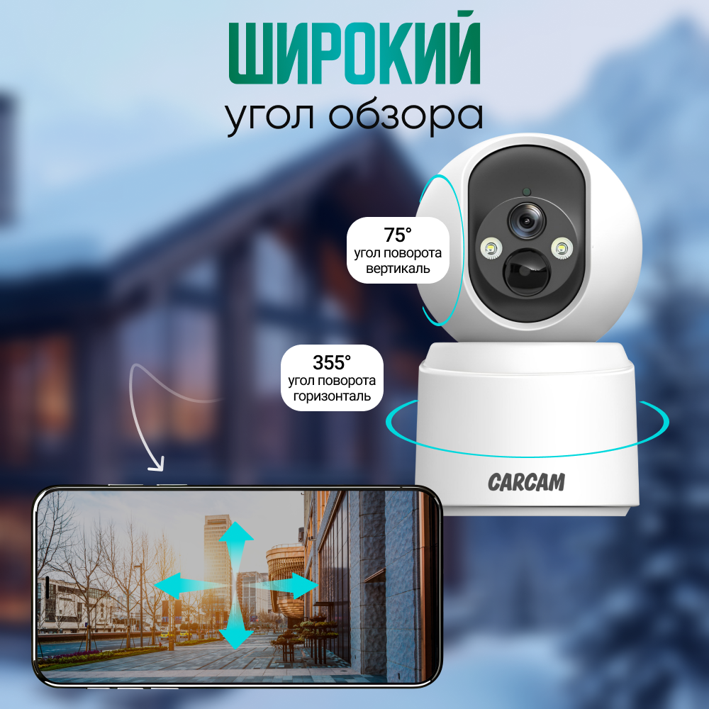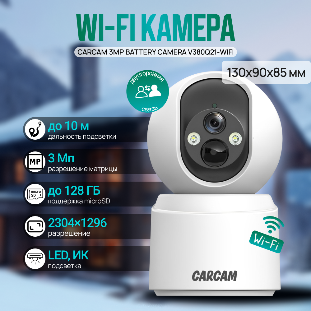 Купить Поворотная WiFi-камера видеонаблюдения CARCAM 3MP Battery Camera V380Q21-WiFi с доставкой по всей России.