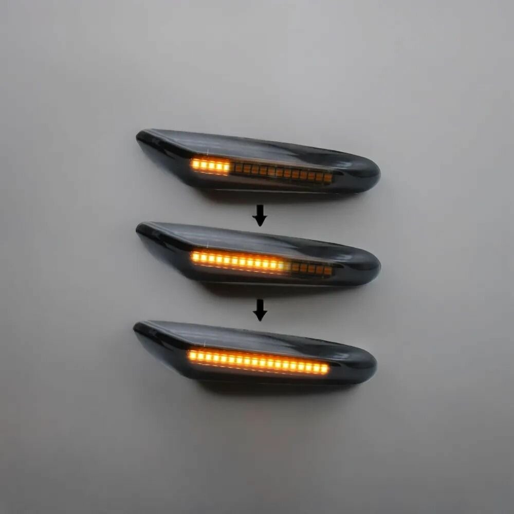 К вашему вниманию тонированные динамические поворотники на крыло для BMW E46 E60 E61 E90 E91 E81 E87 E82 E88 E83 E84 E92 E93 X3 X1 Боковые светодиодные динамические указатели поворота хорошего качества. Сверьтесь по разъему перед покупкой Комплект из 2-х штук (левый и правый) повторитель. -Цвет корпуса: черный -Цвет свечения: желтый Эффектное яркое свечение, улучшает внешний вид автомобиля и делает движение более безопасным. Благодаря динамическому сигналу ваши действия на дороге станут более заметны для других участников движения. Придадут Вашему авто интересный, стильный вид. Устанавливается на штатные места без каких-либо трудностей. Такой комплект поворотников отличный аналог взамен оригиналу. Светодиоды светят достаточно ярко и интереснее штатных ламп, без каких либо ошибок по электрике. Кодирование не требуется. Простота установки, прямое подключение к оригинальной вилке. Подходят для: (Пожалуйста, сравните пресс-форму с вашим автомобилем перед размещением заказа) Для BMW 1 серии E81 E82 E87 E88 2004-2011 (НЕ M1) Для BMW 3 серии E46 Facelift 2002-2005 (НЕ M3 )(не подходит для 1997-2001) Для BMW 3 серии E90 E91 E92 E93 2006-2011 (НЕ M3) Для BMW 5 серии E60 E61 2004-2010 Для BMW X1 E84 Pre-Facelift 2010-2012 Для BMW X3 E83 2004-2010 Для BMW F10 F18 5 серии 2009-2016 Для BMW X3 E83 2003-2010 Для BMW X1 E84 2010-2015 Для BMW E46 3 Серии 2002-2005 (нет для M3) Для BMW E60 5 серии 2001-2010 Для BMW E61 5 серии 2003-2010 Для BMW E81 1 серии 2004-2011 Для BMW E82 1 серии 2006-2013 Для BMW E87 1 серии 2003-2012 Для BMW E88 1 серии 2007-2013 Для BMW E90 3 серии 2004-2012 Для BMW E91 3 серии 2004-2012 Для BMW E92 3 серии 2005-2013 Для BMW E93 3 серии 2006-2013 Примечание: Не применимо к BMW E46 330D 184Cv 2003 года выпуска Номер детали OEM: 63137253326, 63137253325, BM2570117 BM2571117, 63133418445, 63133418446, 63133418447, 63133418448, 63137165913, 63137165914 Простая установка и подключение устройства. Длительный срок службы, 100% водонепроницаемый. Цвет светильника: желтый динамический. Материал: АБС-пластик Посылка включает в себя: 2 шт боковые динамических указателя поворота (слева и справа). Пожалуйста, сравните форму с вашим автомобилем перед оформлением заказа. Инструкции по установке не включены, как разобрать можно подглядеть в интернете. Мы будем рады если вы осветите положительный отзыв купив поворотники для BMW E90, E91, E92, E93, E60, E87, E82, E46 в нашем магазине.