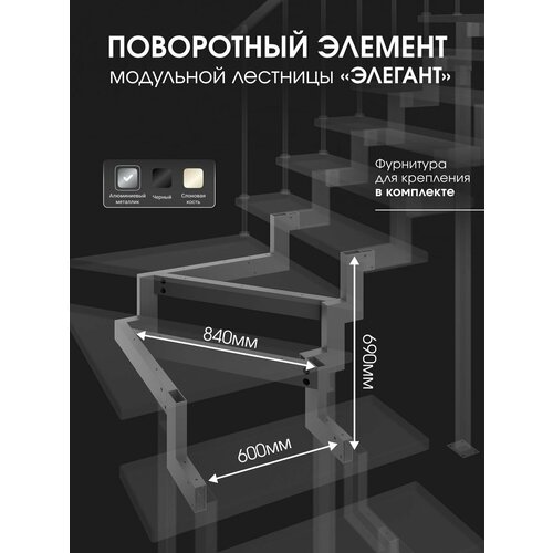 Купить Поворотный элемент на 90 градусов для модульной лестницы Элегант Стамет, 3 шага, цвет серый металлик с доставкой по всей России.