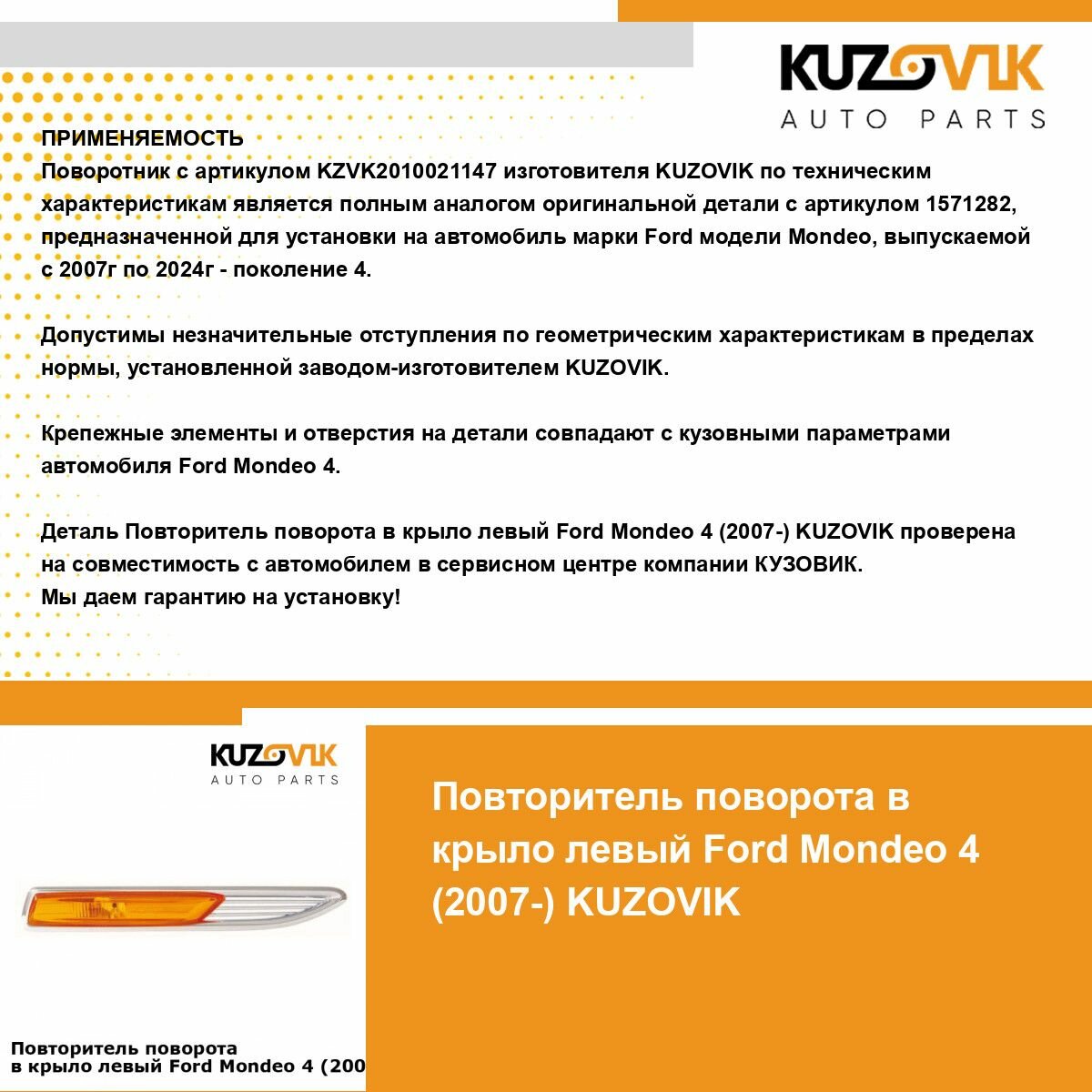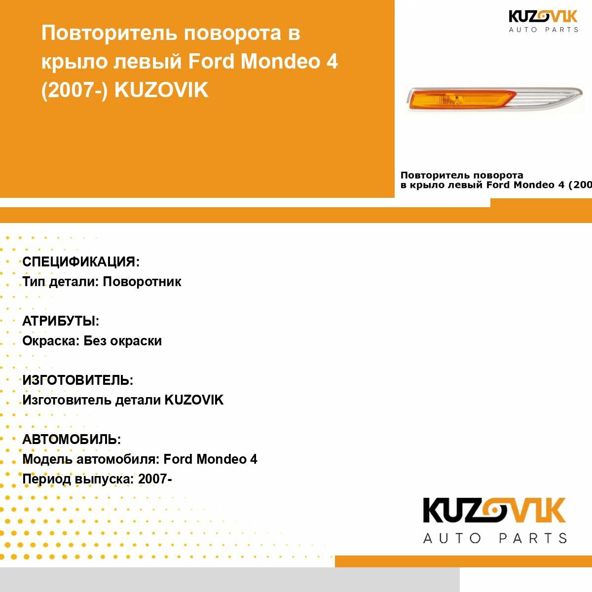 Повторитель, указатель поворота в крыло Форд Мондео Ford Mondeo 4 (2007-) левый угловой: сравнение цен, характеристики, фото, актуальное наличие и цены.